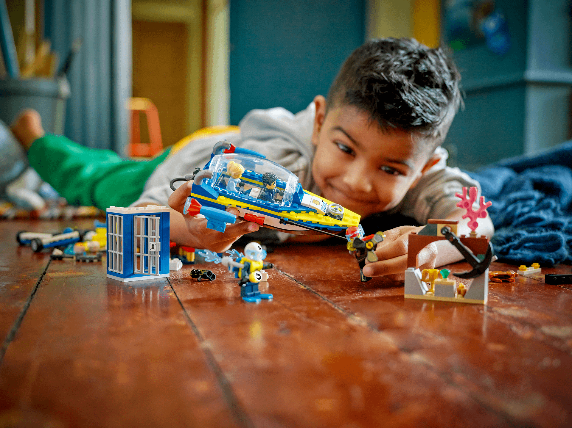 - Packed with mission accessories – Minifigure accessories include scuba gear, a magnifying glass, life jacket, walkie-talkie, binoculars, handcuffs, camera and treasure