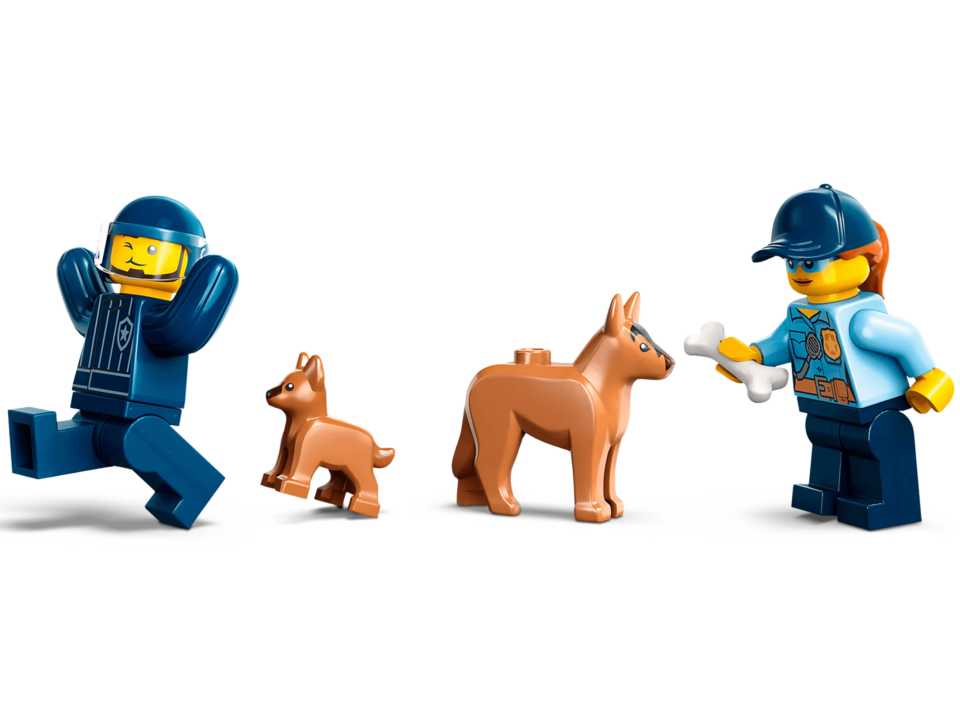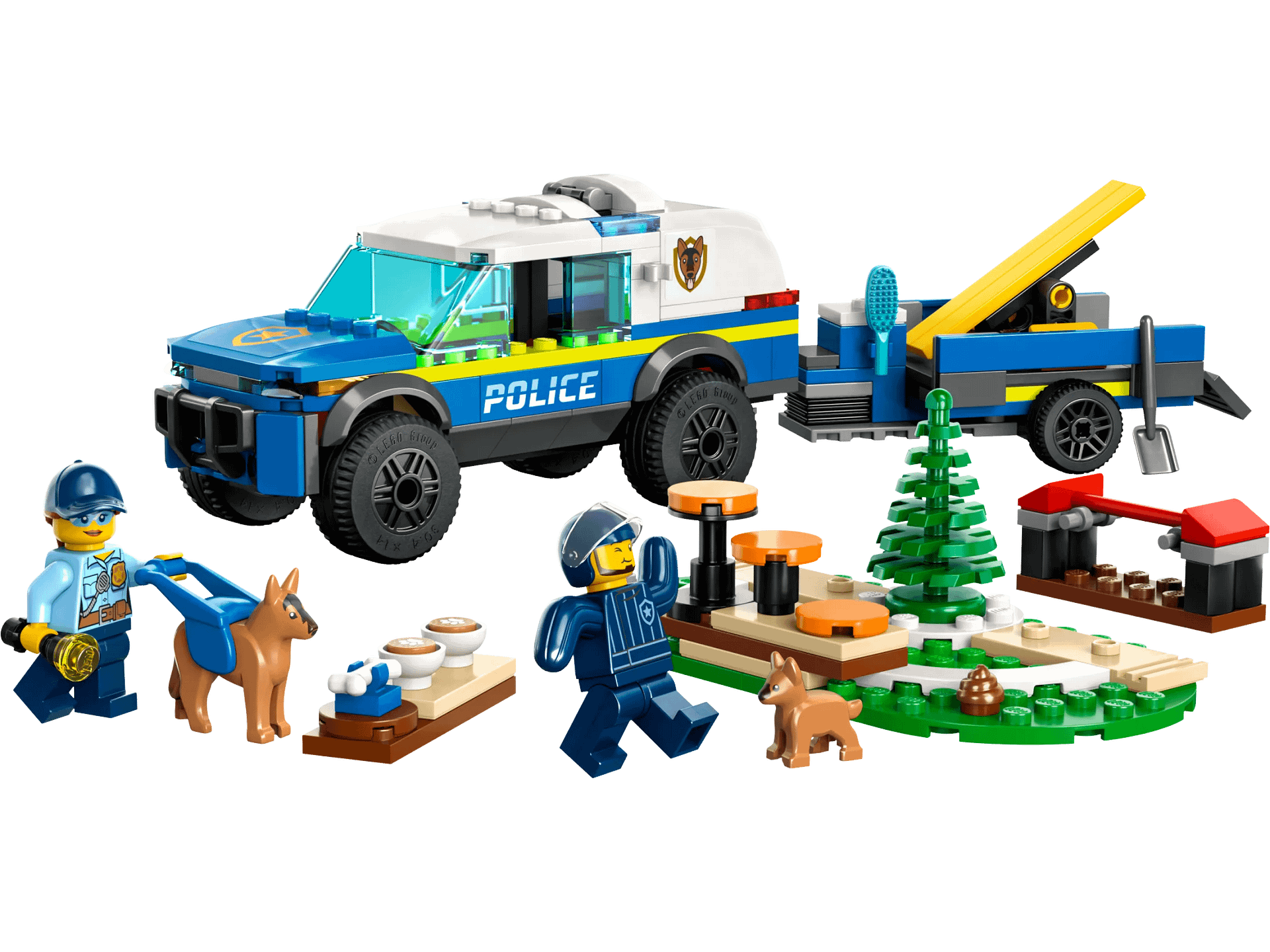 - What’s in the box? – Everything kids need to build a toy police K9 SUV, trailer, 3 dog-training apparatus and a training ground setting, plus 2 minifigures, a dog figure and a puppy figure