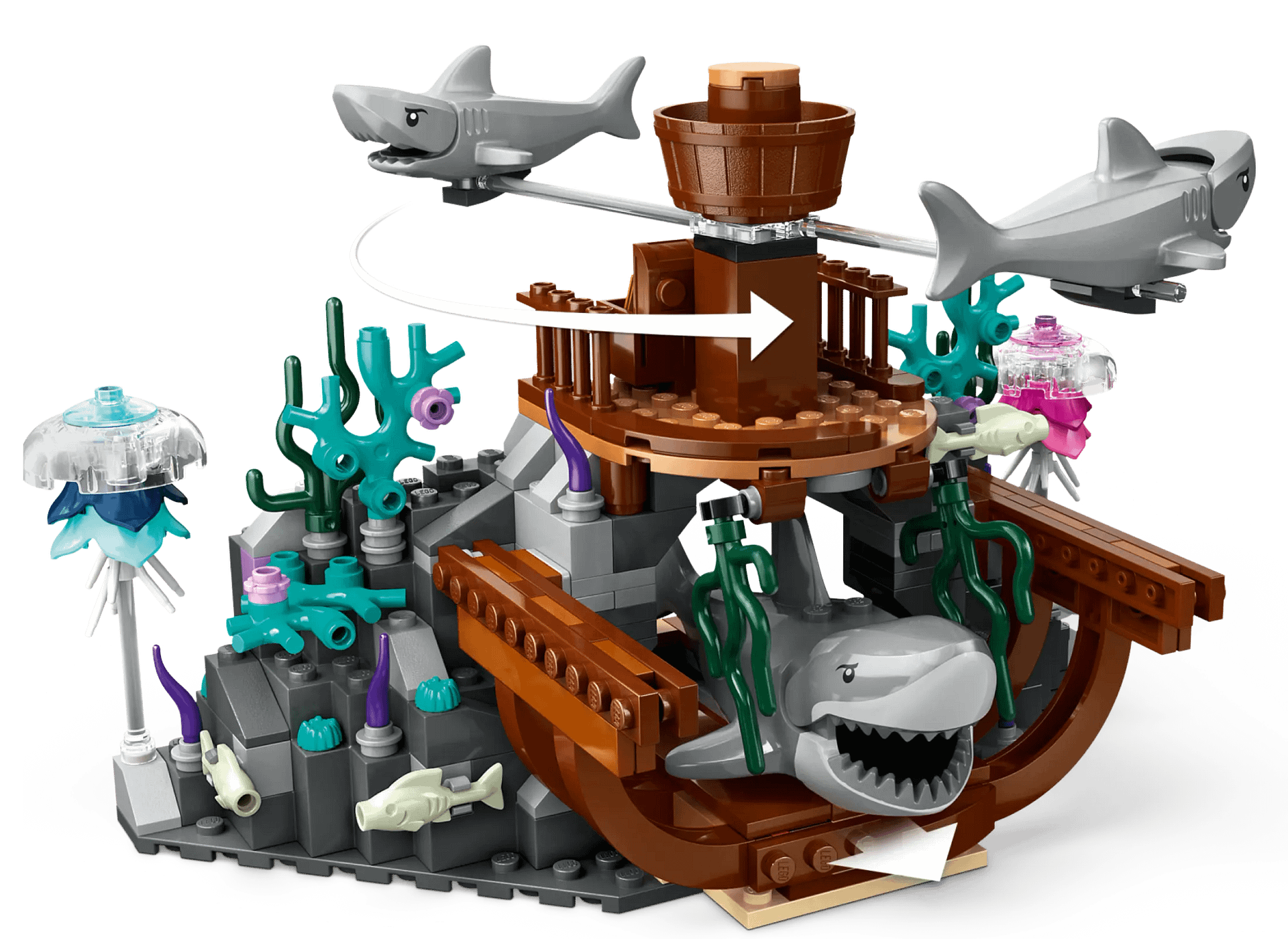 - Fun functions add to the play – The toy shipwreck setting features 2 circling sharks and a shark-surprise function