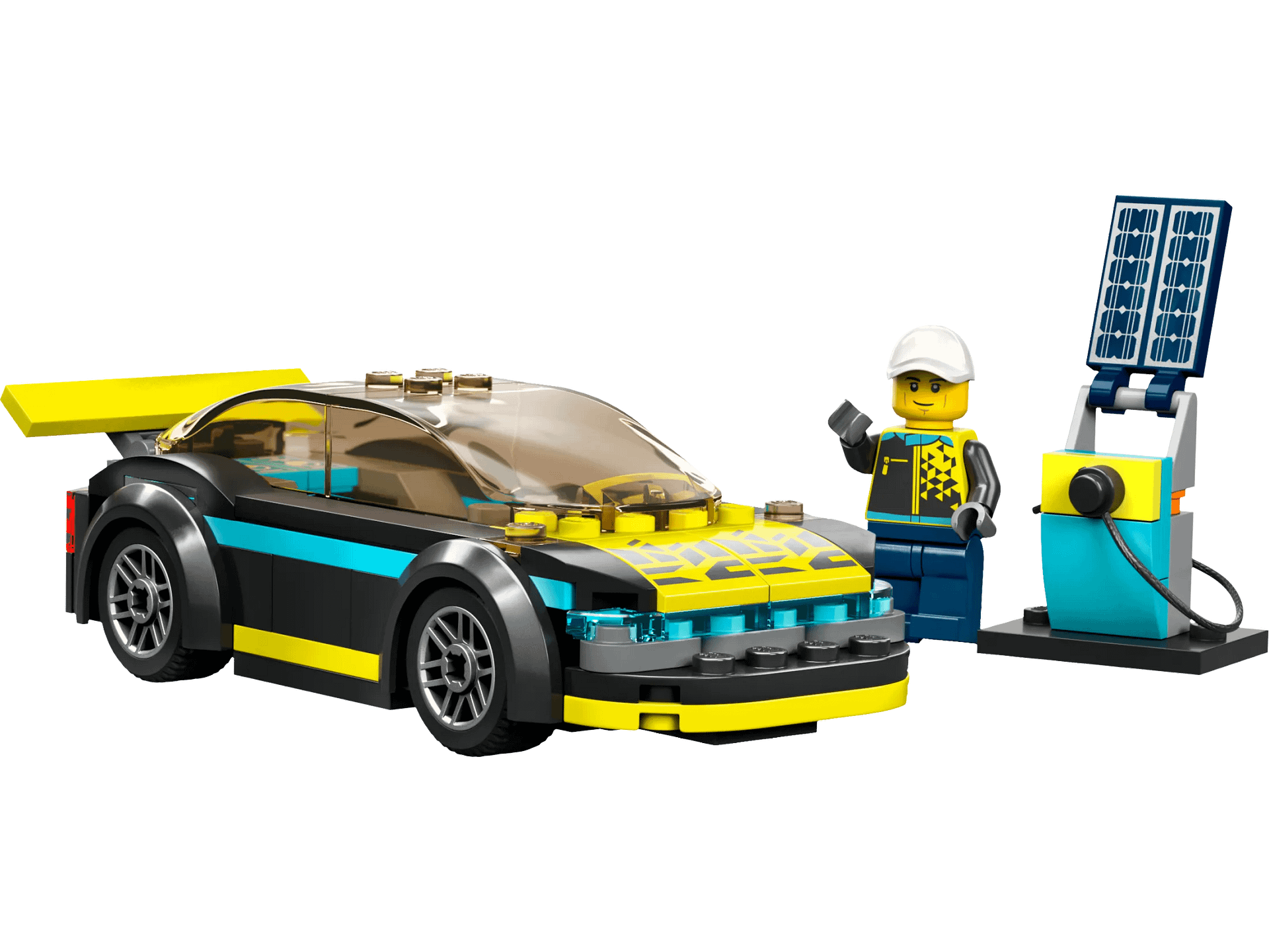 Kids who like toy cars will love the LEGO® City Electric Sports Car (60383), featuring a futuristic design with neon-yellow detailing, cool wheels and a large rear spoiler. This playset also includes a toy charging station and a driver minifigure for fun role play.
