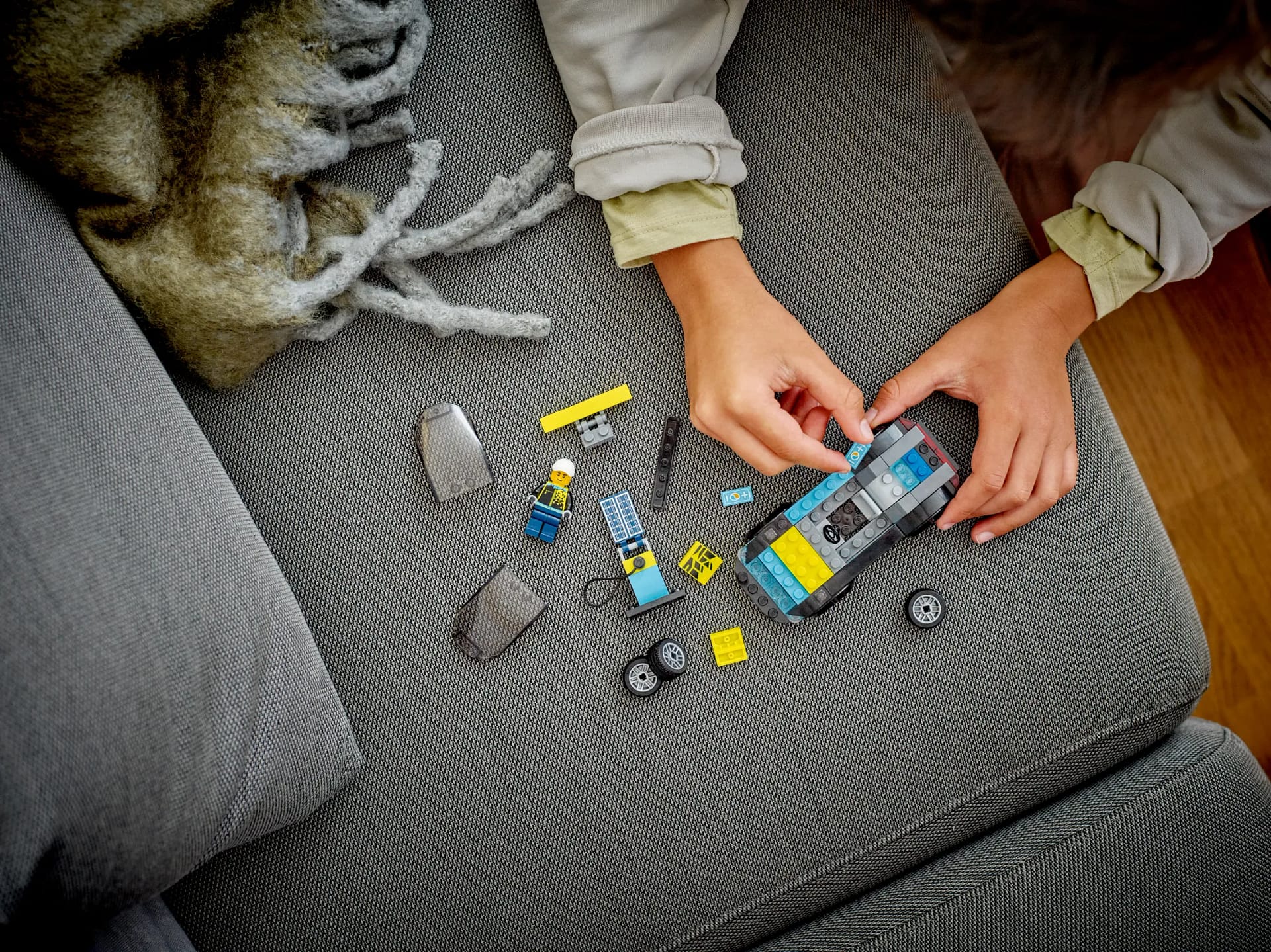 - What's in the box? – Everything you need to build a toy sports car and a pretend charging station, plus a driver minifigure