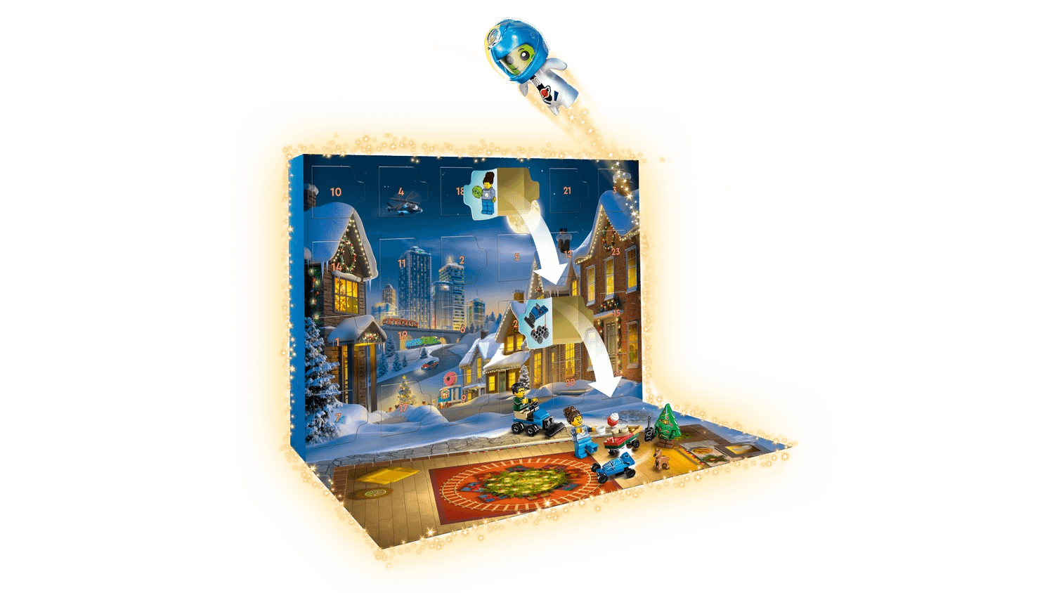 - Play-and-learn toys – Exciting stories unfold as kids discover festive characters, seasonal mini builds and accessories behind every door