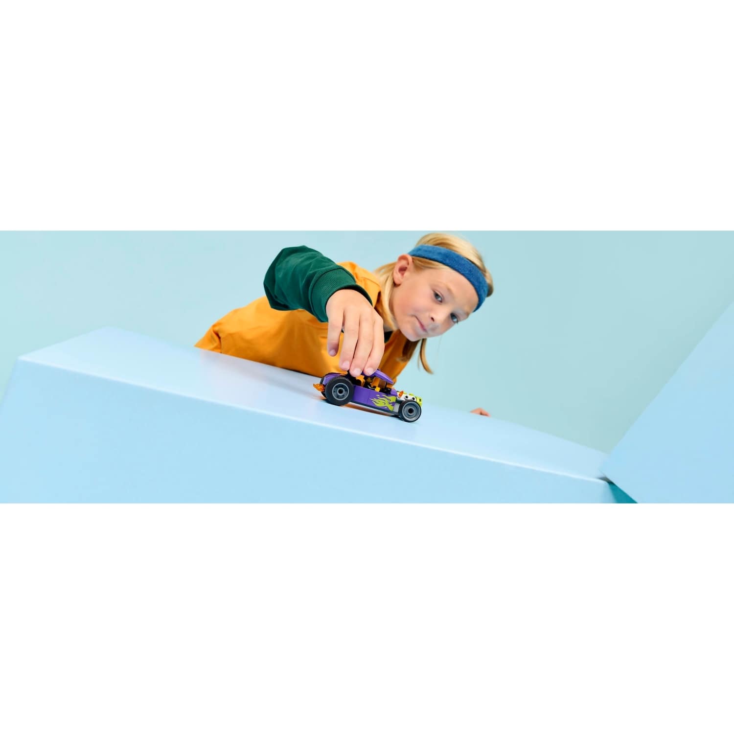 Young race car lovers ages 5 and up can buckle up for high-speed drag racing action with the LEGO® City Hot Rod car toy (60485). This model car building kit packs big thrills with detailed racing features including oversized rear tires, a driver cockpit with a lift-up roof, and a cool purple color scheme with neon green flames.