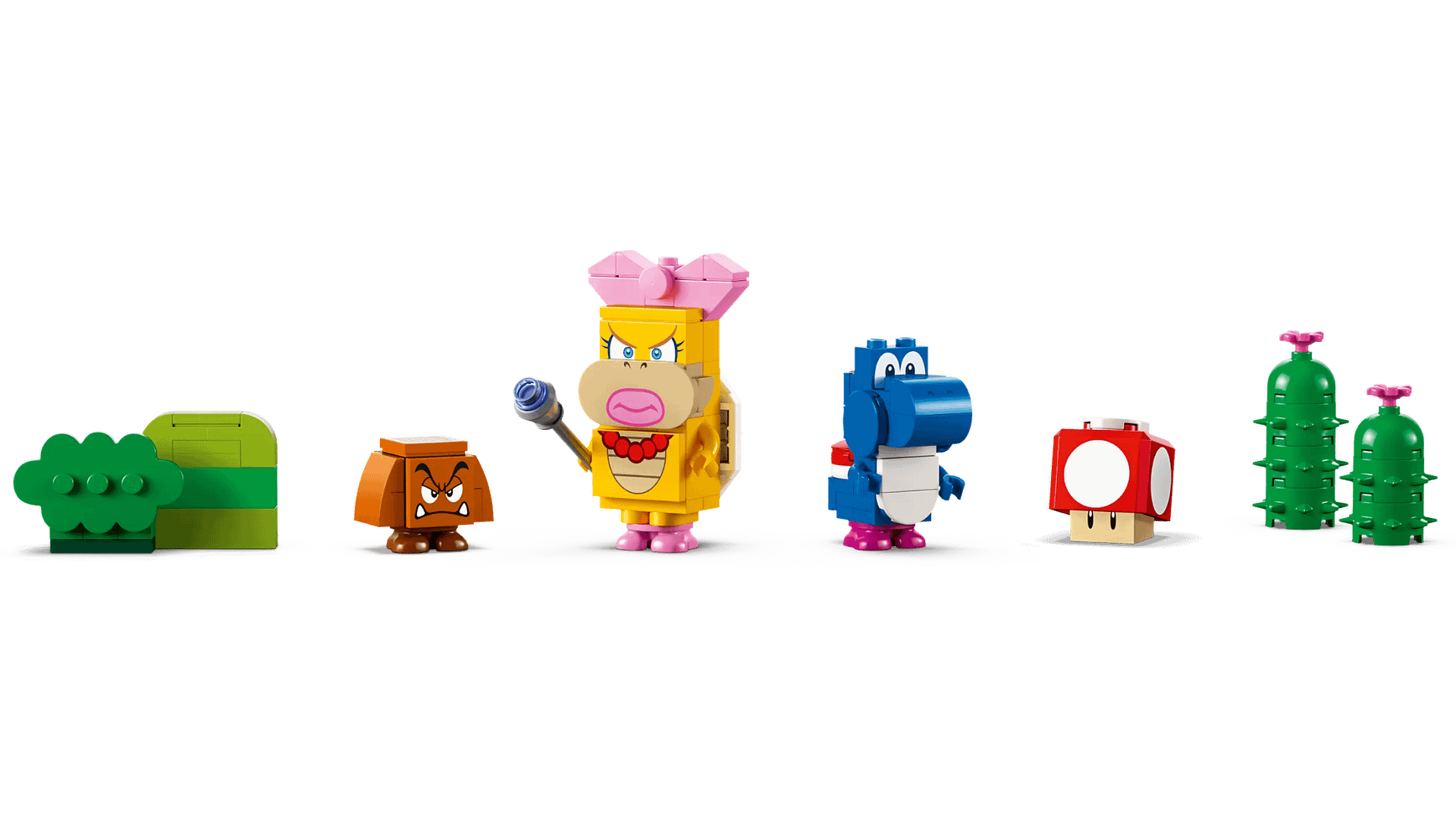 - 3 LEGO® Super Mario™ figures – The set includes Wendy, a Blue Yoshi and a Goomba