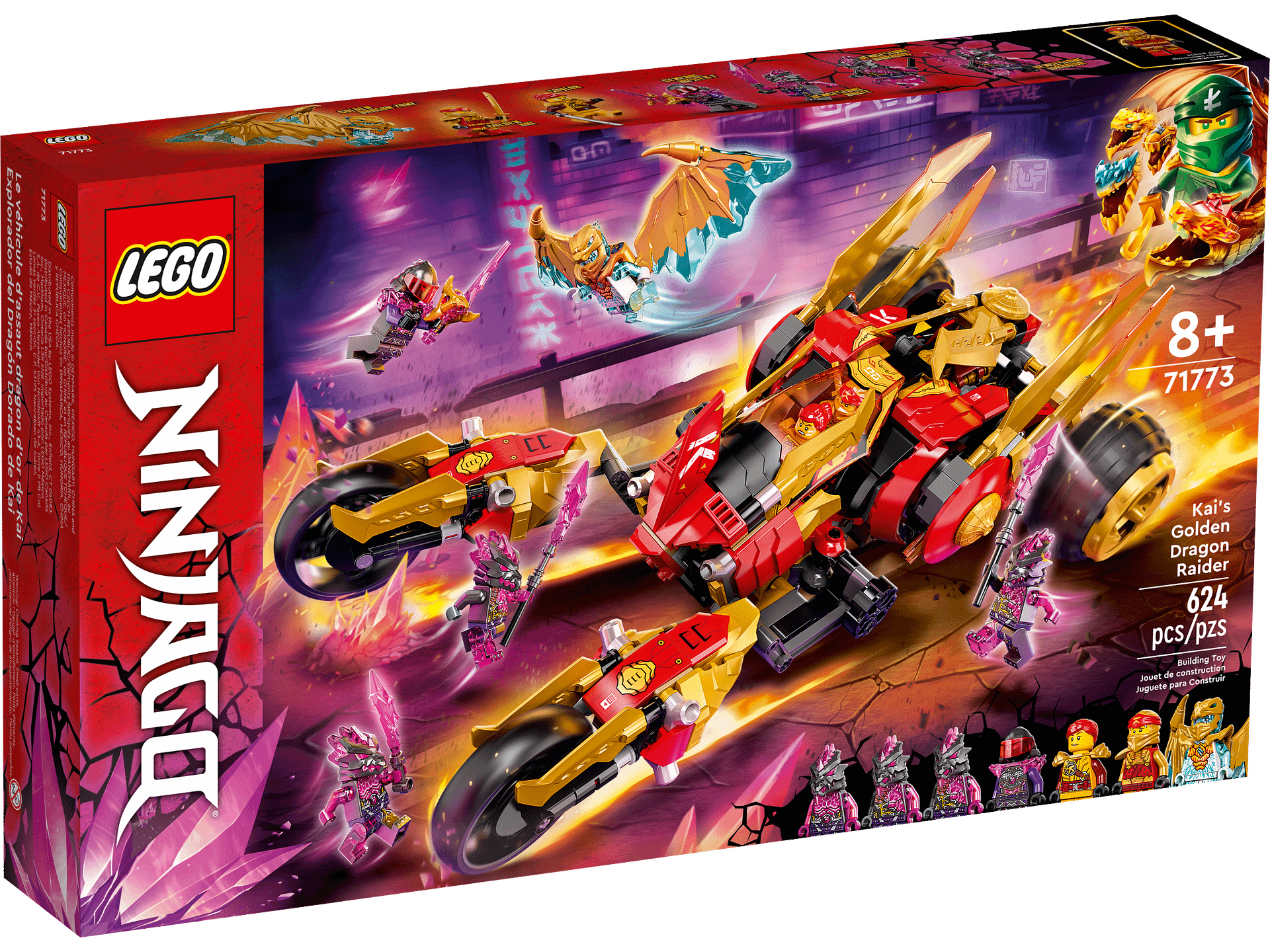 - NINJAGO® vehicle playset – Ninja fans can bring to life their favorite scenes from the NINJAGO: Crystallized TV series with this LEGO® NINJAGO Kai’s Golden Dragon Raider (71773) set