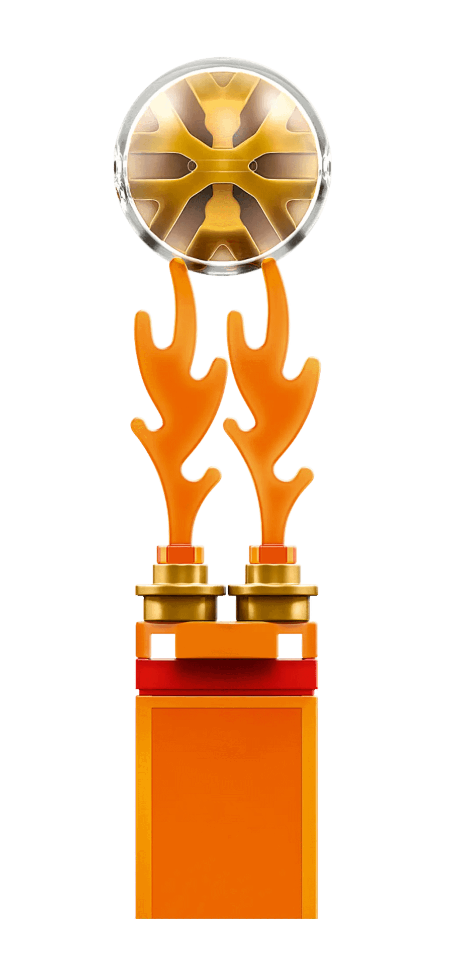 - Ninja prize – The durable playset also features a flaming holder with a collectible golden dragon energy core element, which Kai must win, and 2 flame obstacle elements