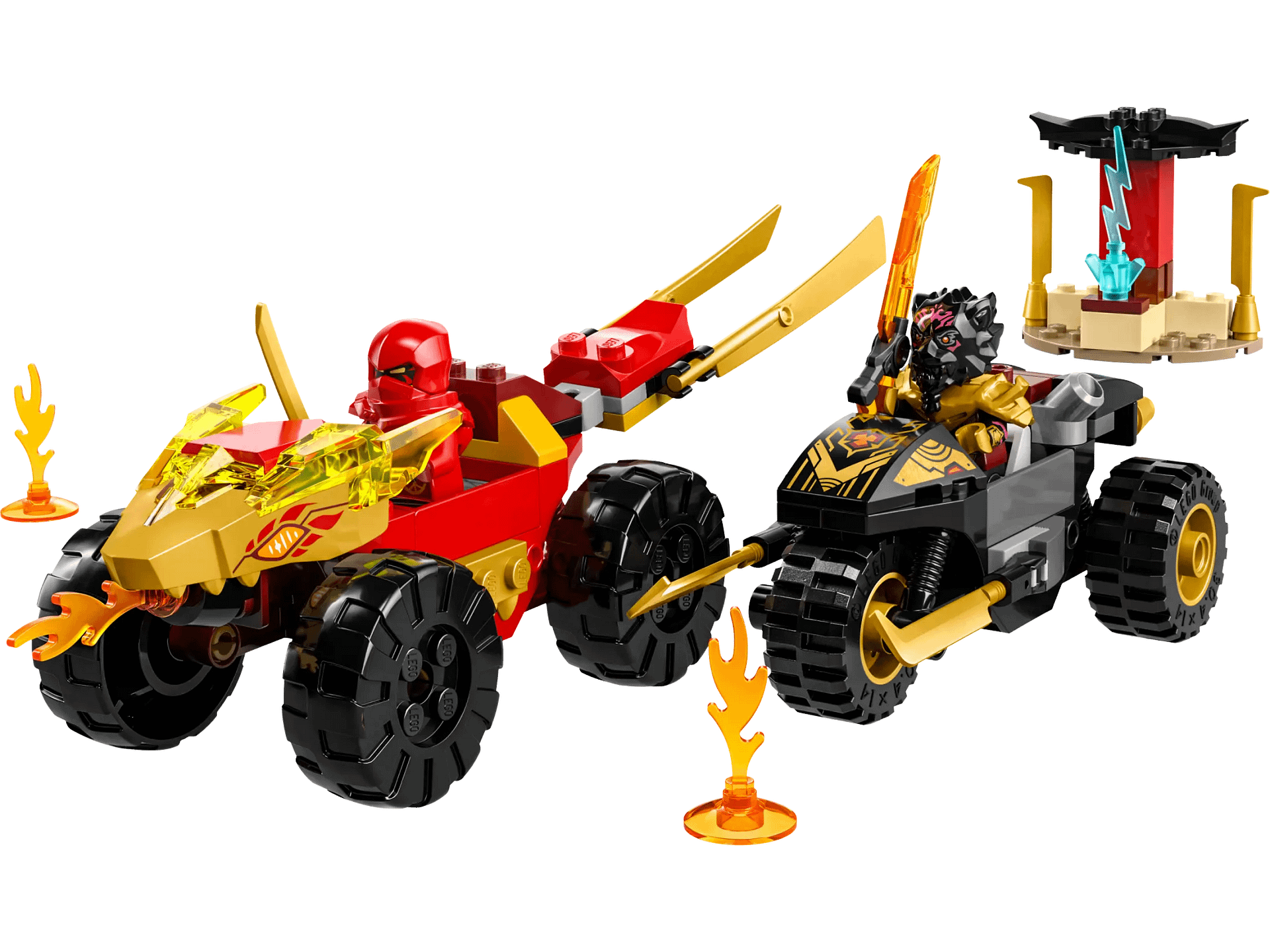 - Beginner LEGO® set – Kids aged 4+ can recreate action from the NINJAGO® Dragons Rising TV series as they learn to build with Kai and Ras’s Car and Bike Battle (71789) playset