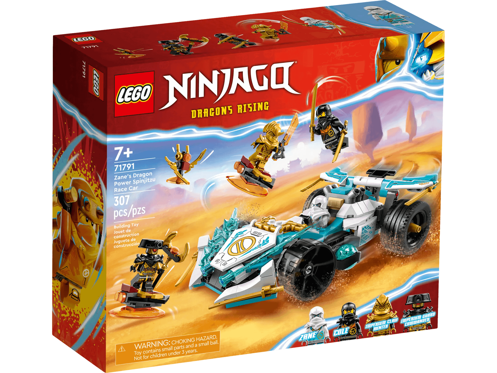 - Ninja car playset – Kids aged 7+ can recreate superfast racing action from the NINJAGO® Dragons Rising TV series with Zane’s Dragon Power Spinjitzu Race Car (71791)