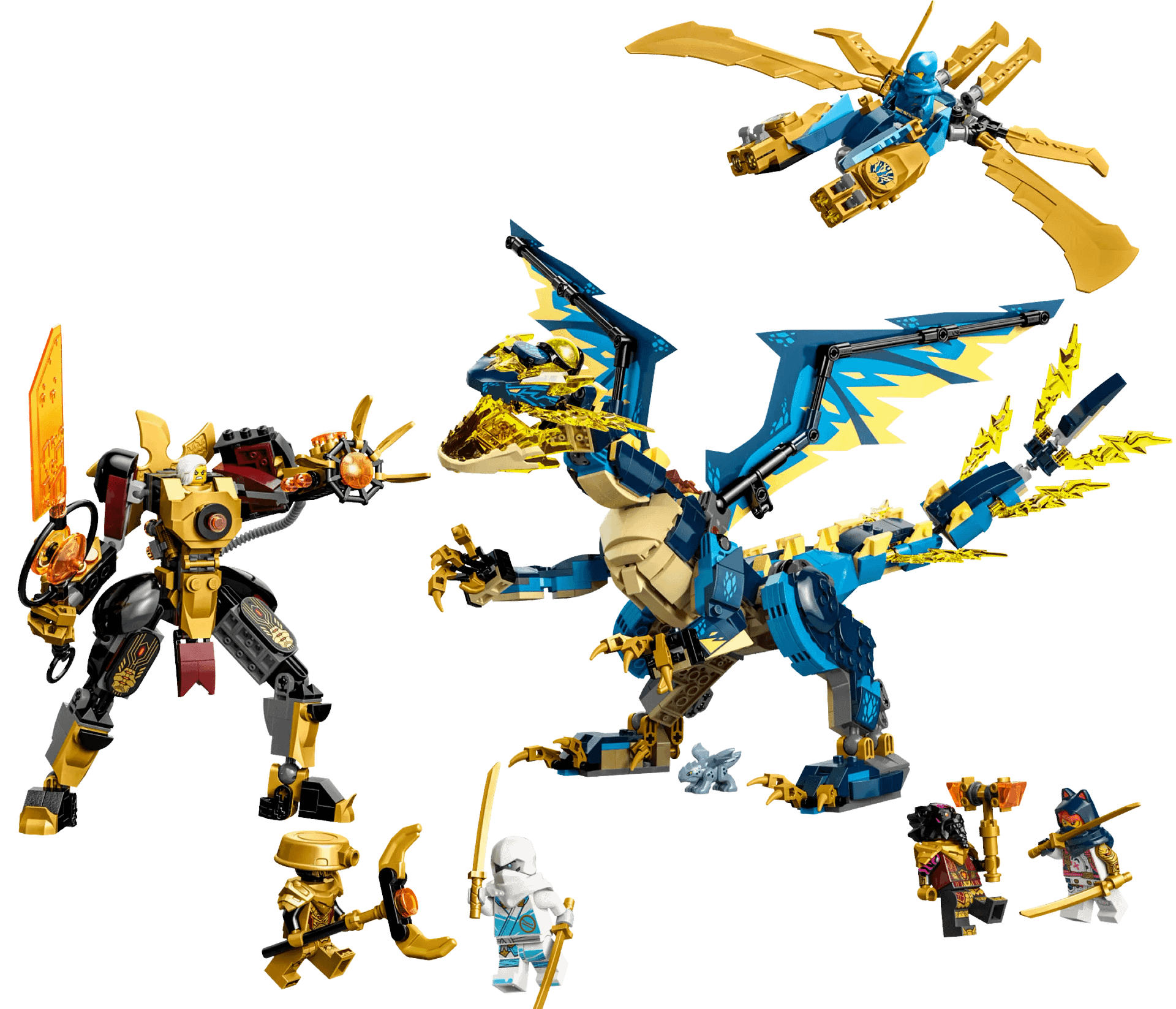 - Dragon and mech playset – Kids aged 9+ can play out an epic showdown from the NINJAGO® Dragons Rising TV series with the Elemental Dragon vs. The Empress Mech (71796) set
