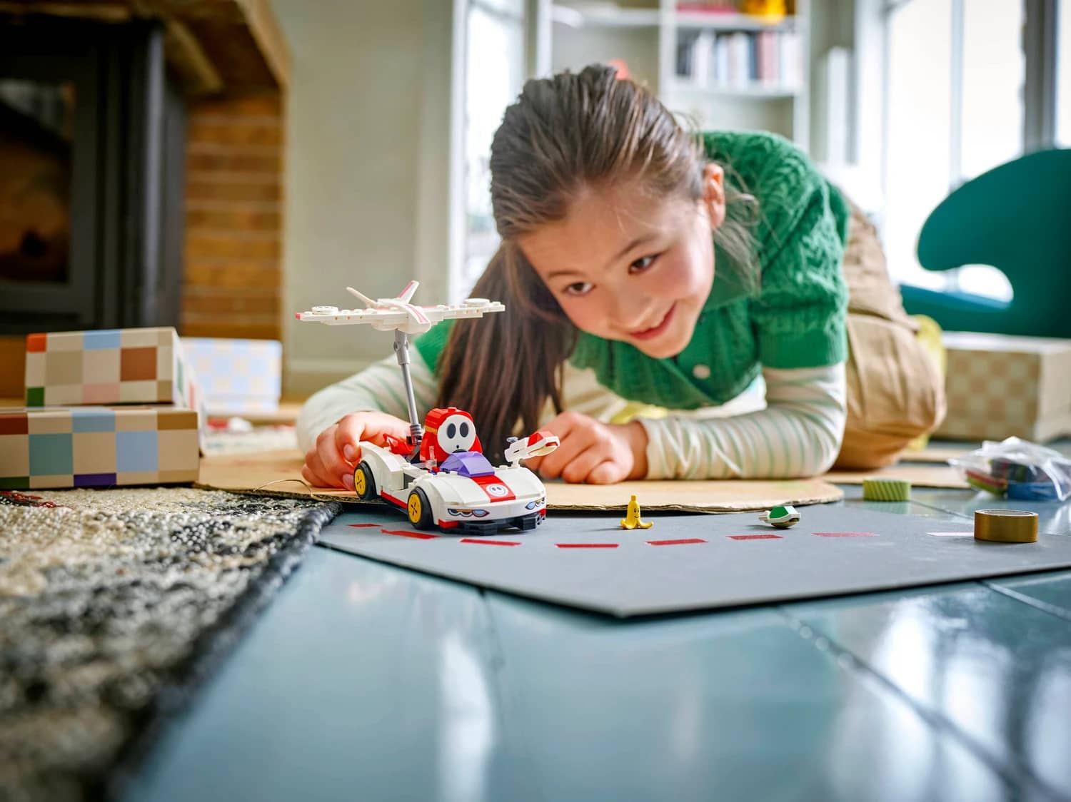 - Interactive play – Drive the P-Wing with LEGO® Mario™, LEGO® Luigi™ or LEGO® Peach™ (figures not included) to trigger Mario Kart™ sound and visual effects for race-starting, drifting, gliding and more