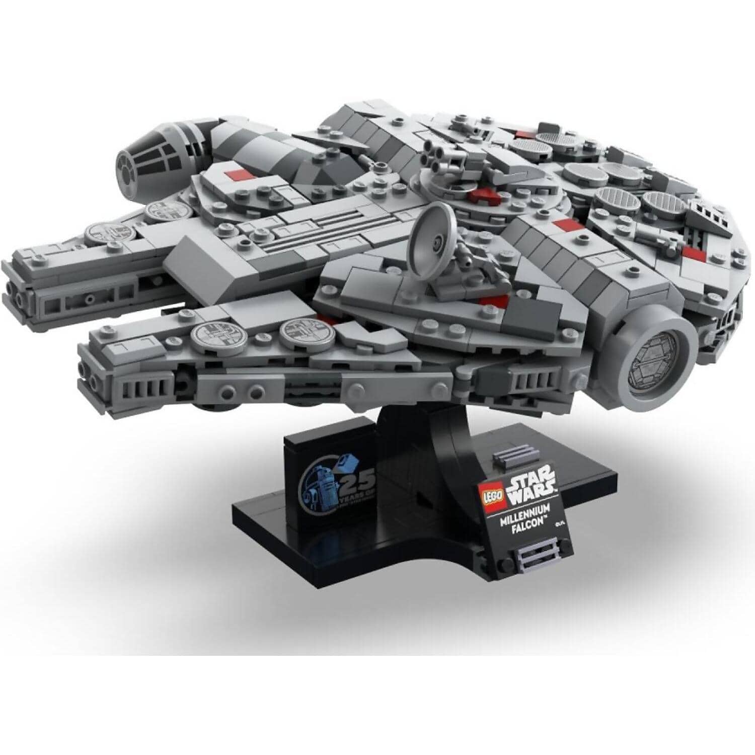 - Made for display – The buildable stand has a nameplate and LEGO® Star Wars™ 25th anniversary brick, and it’s designed to display the Millennium Falcon at a dynamic angle