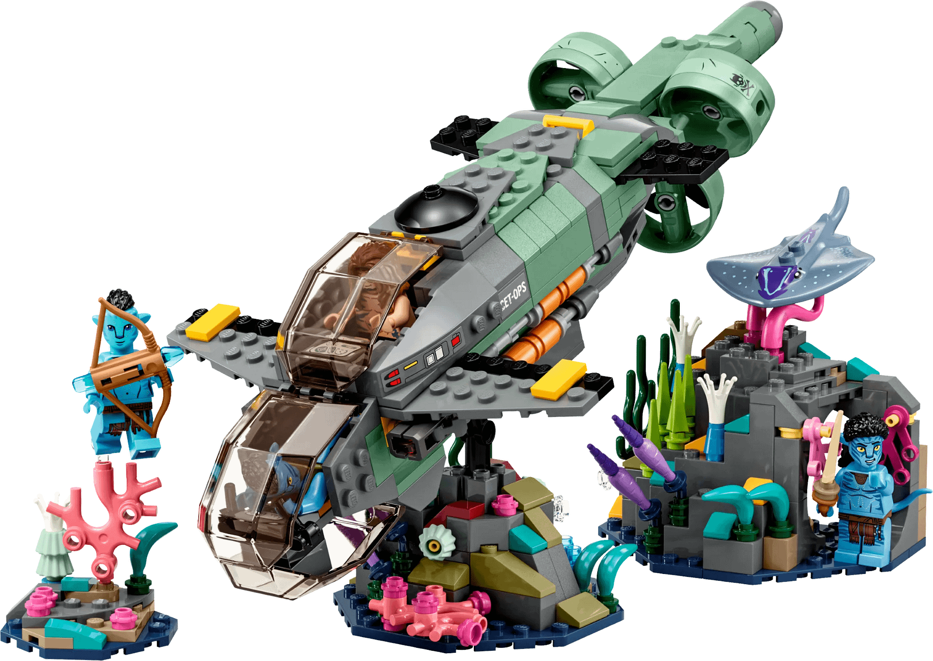 - What’s in the box – Includes all you need to create a toy Avatar Mako submarine, 3 Pandoran ocean coral settings including a cave, and Neteyam, Ao’nung, Spider and RDA Quaritch minifigures