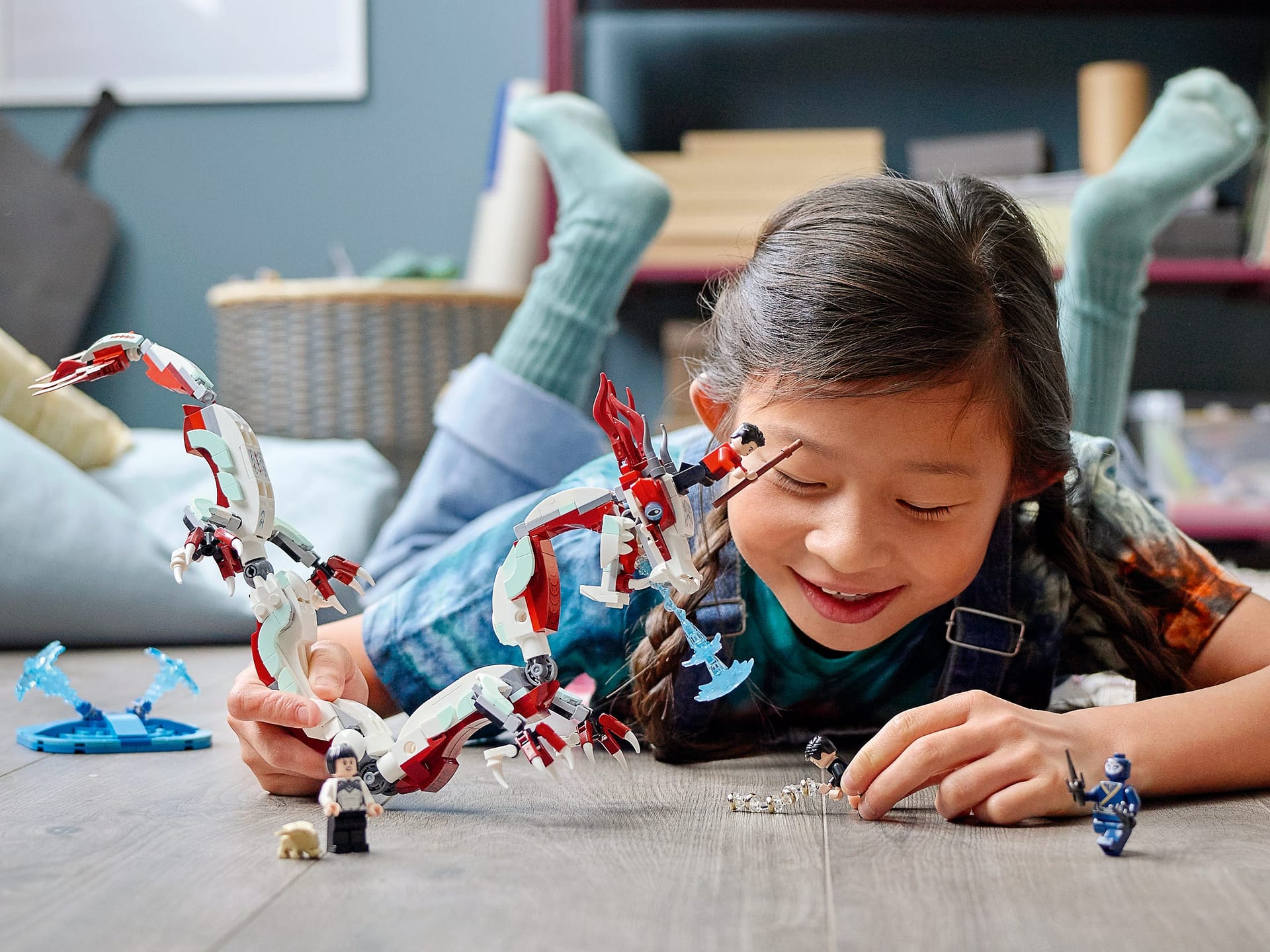 With its articulated body, the buildable, serpent-like Dragon twists and turns in kids’ hands. Iconic minifigure characters from the movie, including Shang-Chi, Wenwu, Xialing and Death Dealer, inspire epic role play. 2 minifigures can attach to the dragon’s water base to create exciting battle scenes. The water base can be removed so the fight can continue on dry land. LEGO construction toys are a great way of playing out Marvel adventures – and kids will love to build, play and display with this amazing, stand-out set.