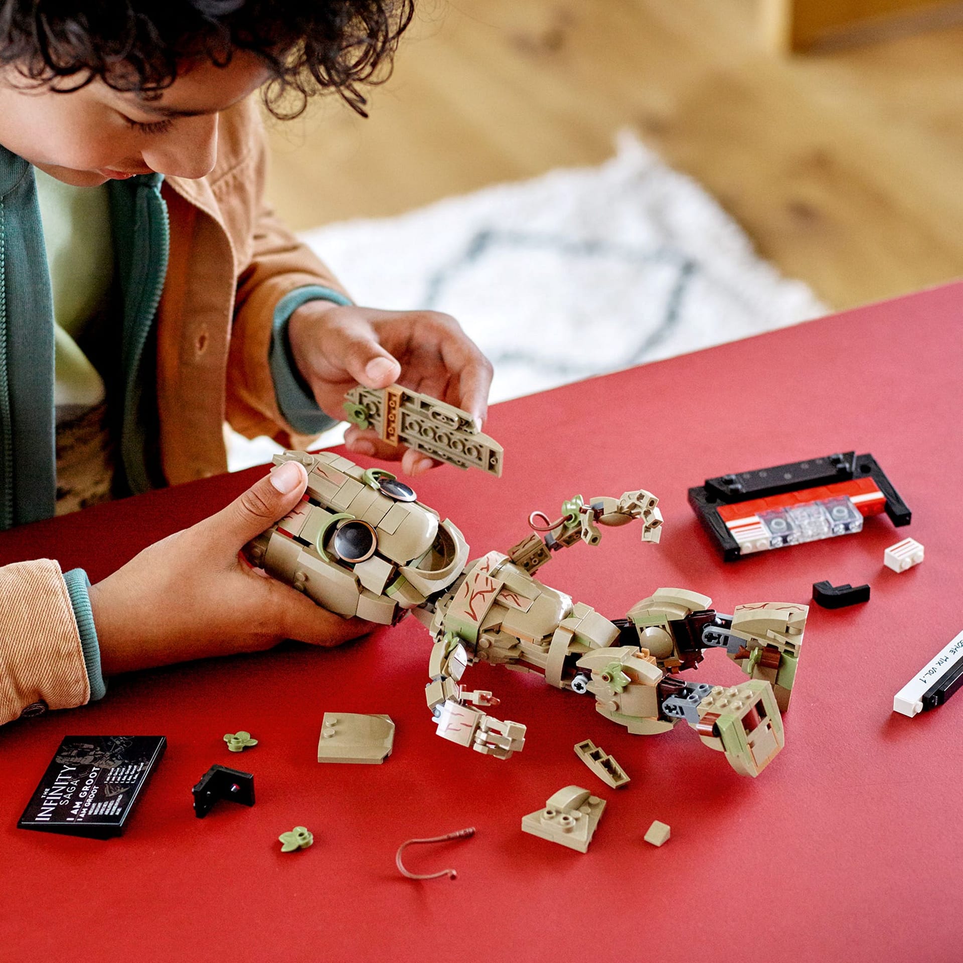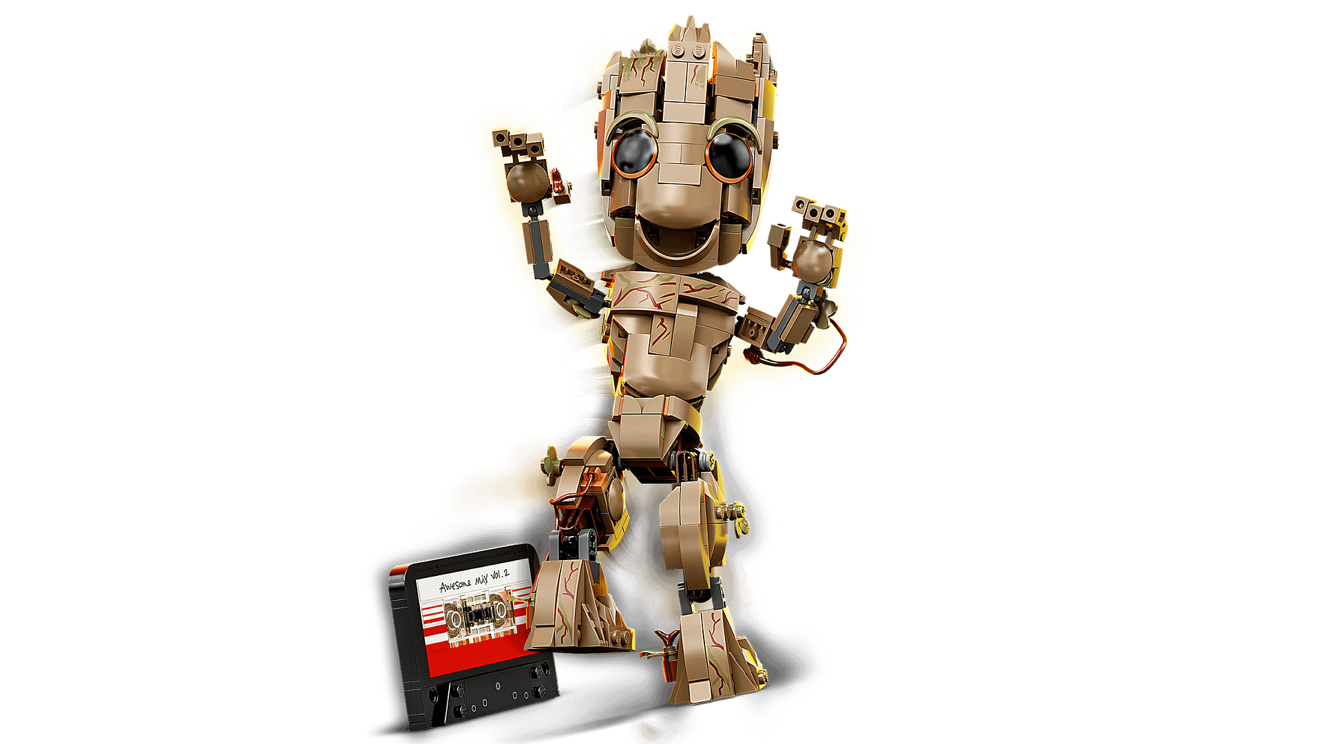 - Iconic Marvel character – Kids build their own Baby Groot, from Marvel Studios’ Guardians of the Galaxy Vol. 2. The set also includes a pretend cassette tape and display nameplate