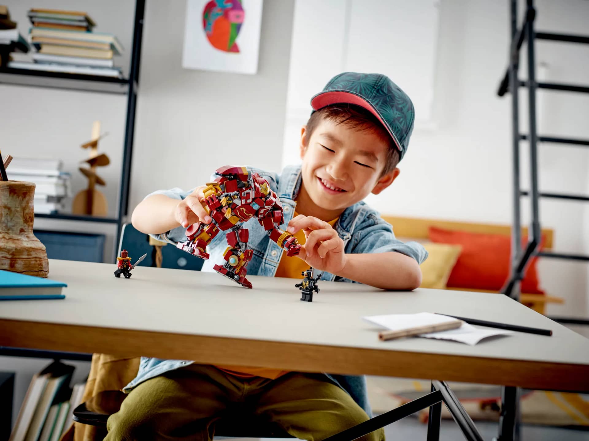- Iconic action heroes – Includes a buildable Hulkbuster and 4 minifigures: Bruce Banner, whose head turns to reveal a ‘going green’ face, Okoye, who carries a spear, and 2 outriders