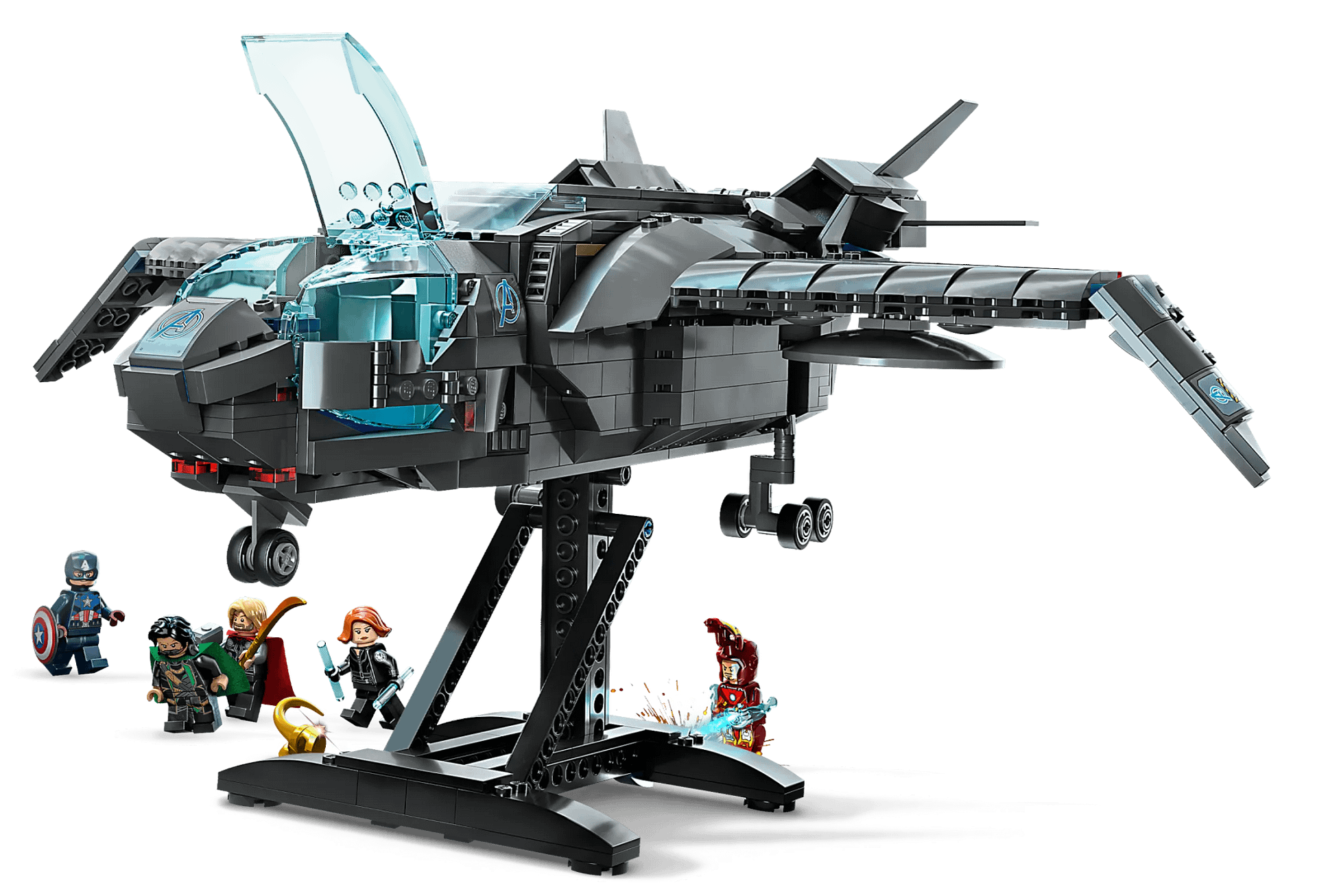 - Build, play and display – This detailed recreation of the famous Quinjet aircraft has an opening cockpit, passenger area and rear section, plus a retractable undercarriage and adjustable wings