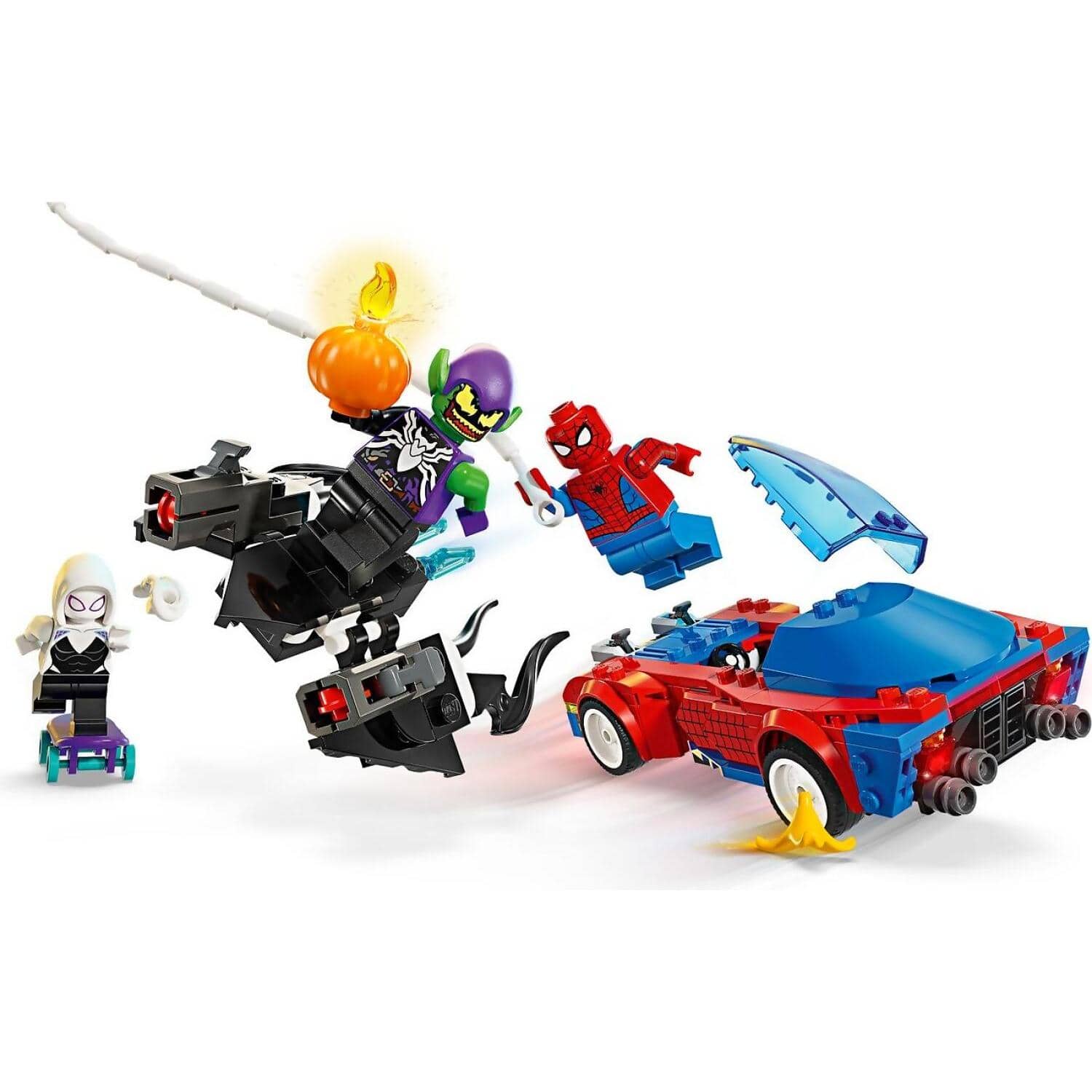 - Build-and-play action toy – Includes a buildable kids’ toy car, weapons, accessories, LEGO® Marvel Spider-Man and Ghost-Spider hero minifigures, and a Venom Green Goblin minifigure