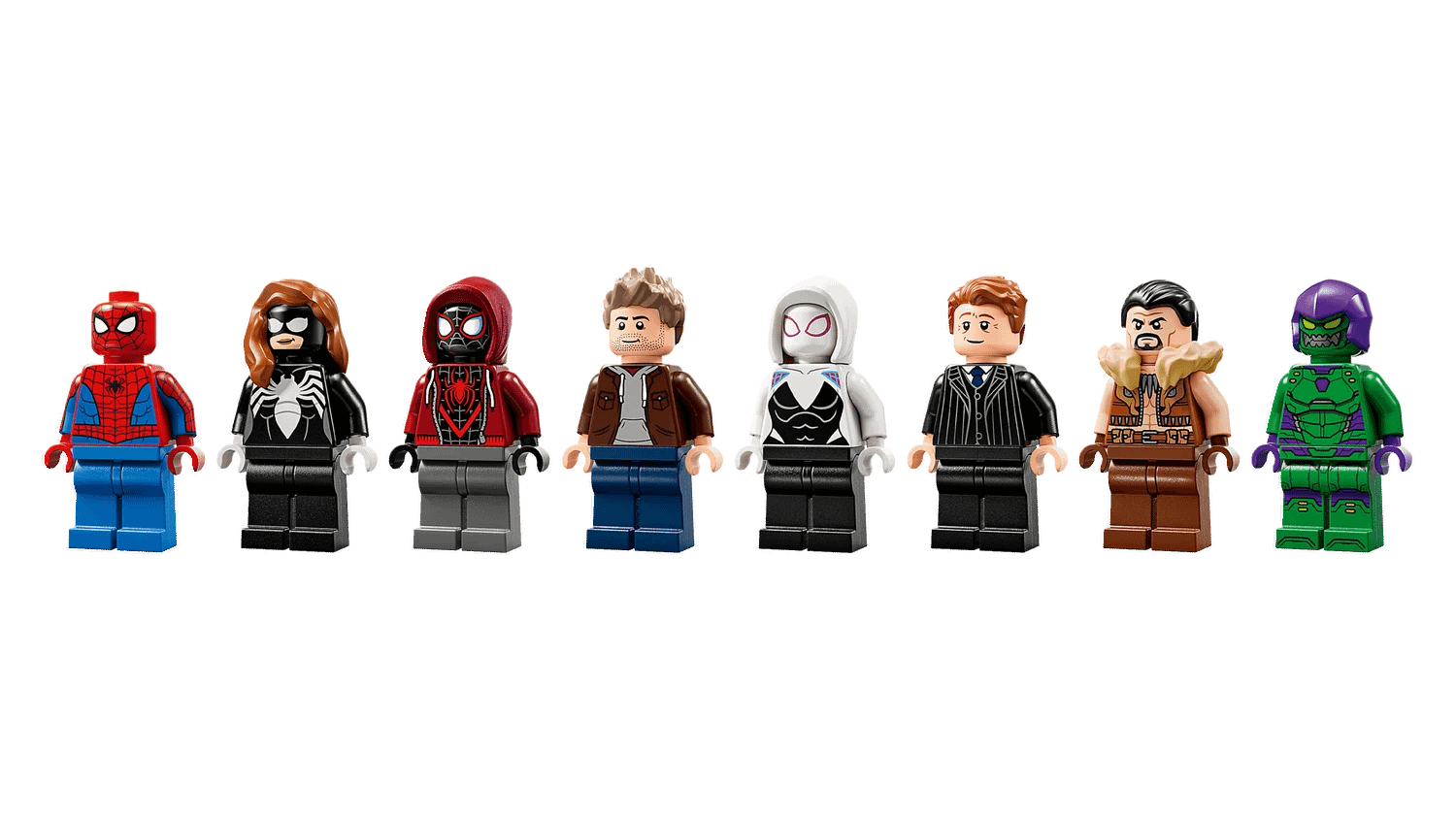 - Super Hero minifigures – The buildable set includes 8 LEGO® minifigures: Spider-Man, Spider-Woman, Miles Morales, Eddie Brock, Ghost-Spider, Norman Osborn, Kraven the Hunter and Green Goblin