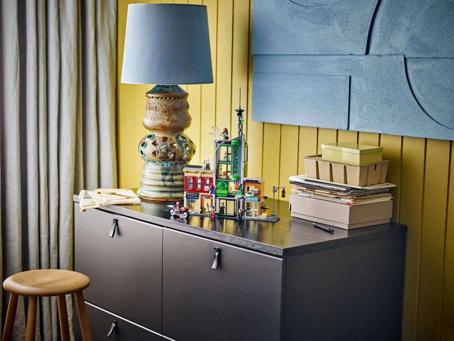 The street scene comprises 3 separate buildings: Miles Morales’s apartment with a jewellery shop underneath, the Oscorp building, and Venom’s apartment with a newsagent below. Each room is furnished with relevant equipment and accessories. 8 LEGO minifigures from the Marvel films ensure endless web-slinging action: Spider-Man, Spider-Woman, Miles Morales with his motorbike, Eddie Brock, Ghost-Spider, Norman Osborn, Kraven the Hunter and Green Goblin with his glider. Transparent sticks allow kids to position and pose characters with realistic ease. Build Together on the LEGO Builder app lets friends and family share the creative fun. Contains 808 pieces.