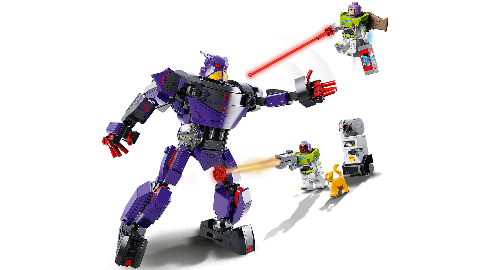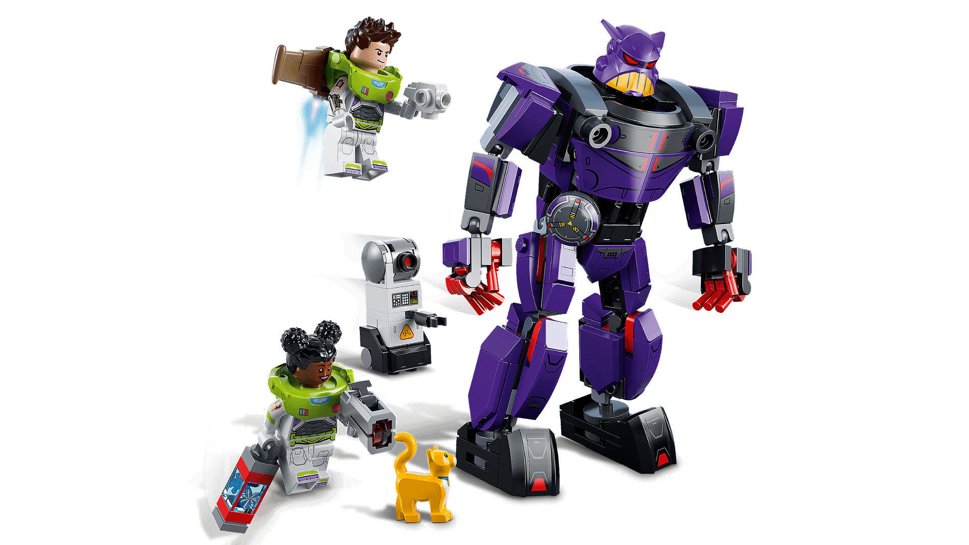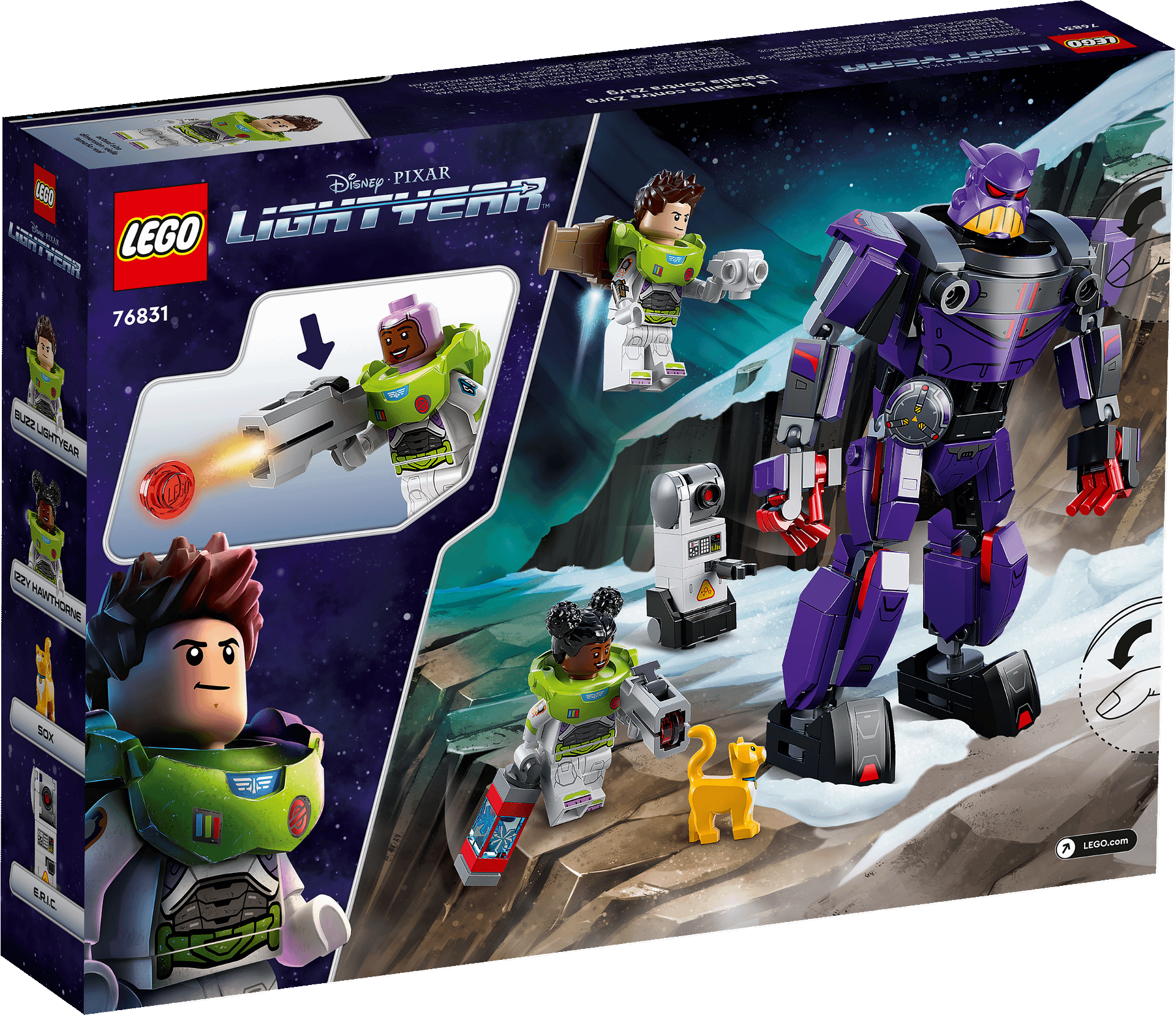 - Characters from the film – Zurg Battle (76831) comes with 2 minifigures, including Disney’s Buzz Lightyear, a LEGO® robot cat figure, a buildable robot and a posable mech
