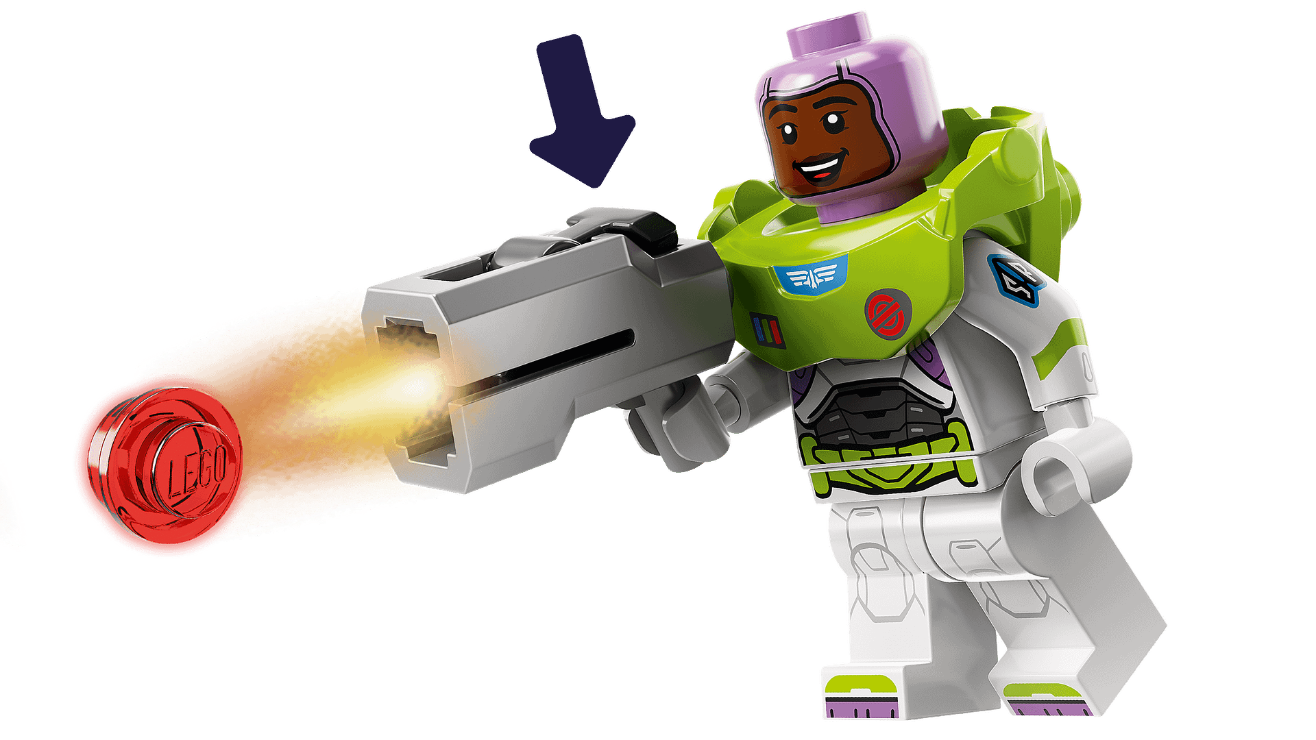 - Action-packed battle – Fans help stop Zurg stealing the fuel cell from Buzz’s spacecraft with a range of cool weapons, including a wrist laser, blaster and stud shooter