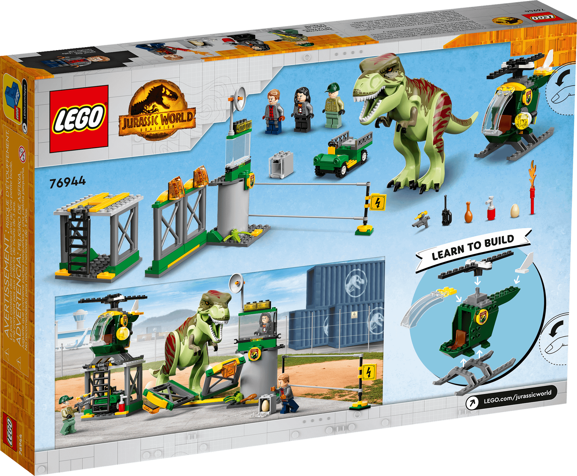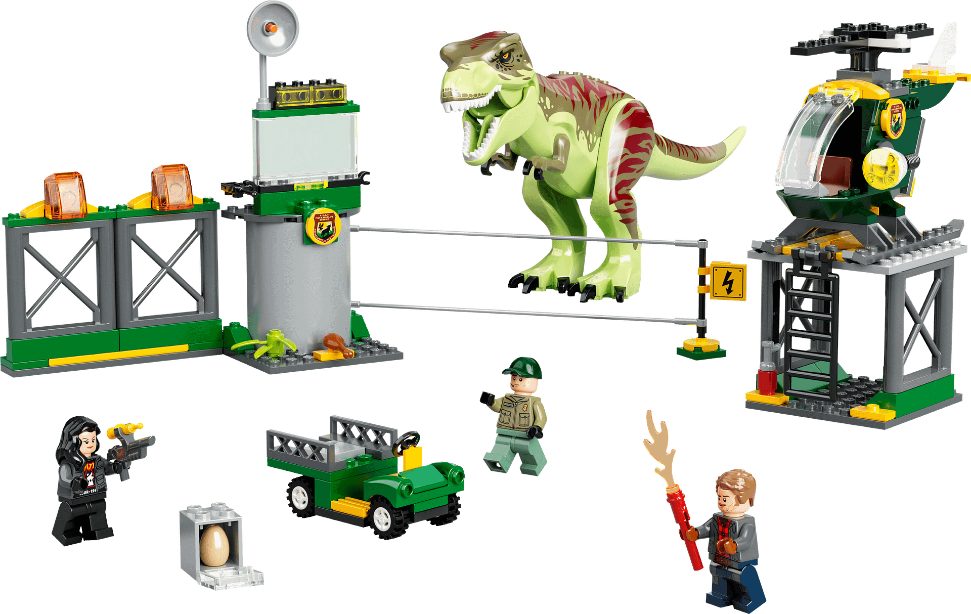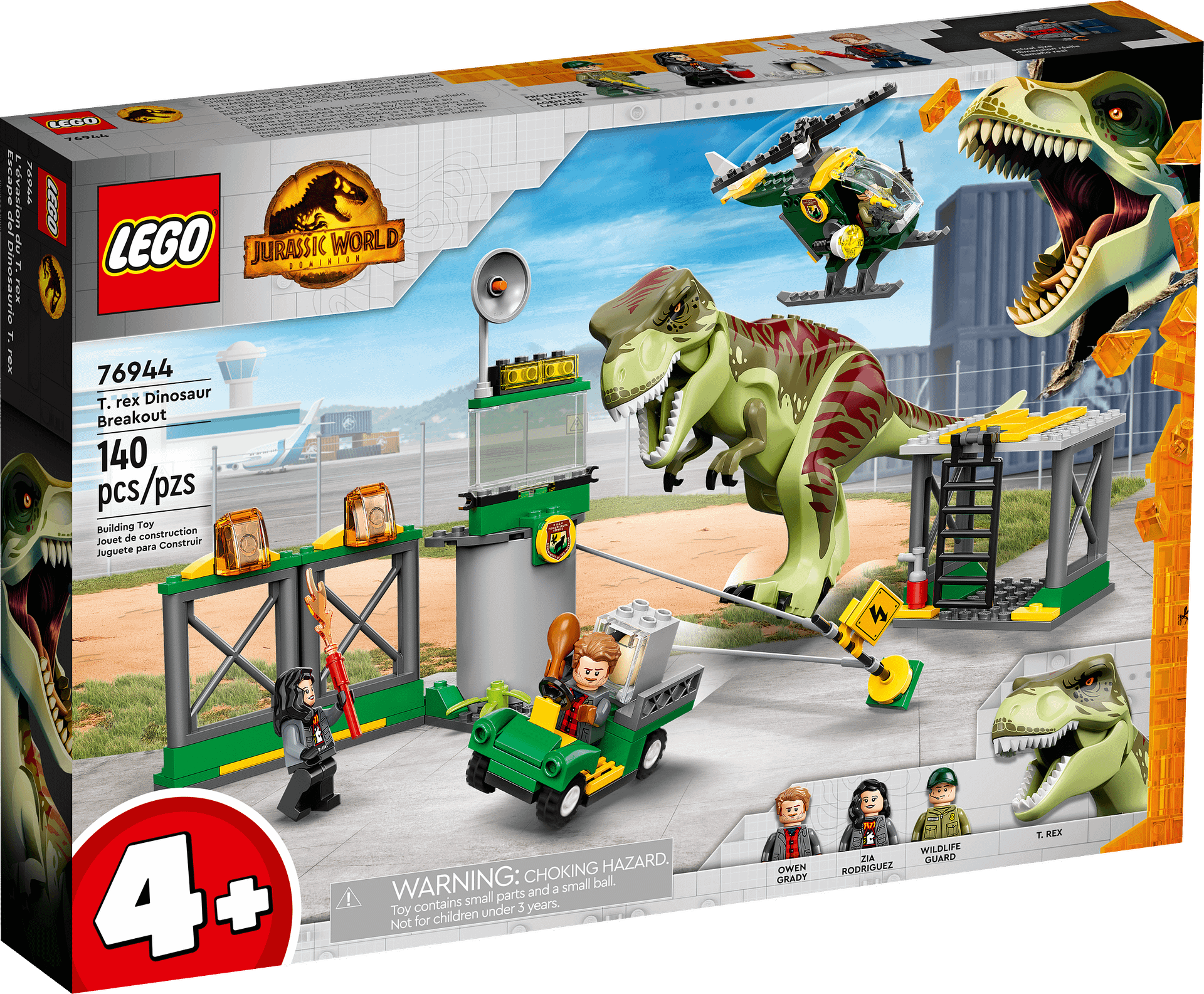 - Starter set – Introduce children aged 4 and up to LEGO® Jurassic World toys with this T. rex Dinosaur Breakout (76944) playset, featuring an airport, helicopter, buggy and a T. rex figure