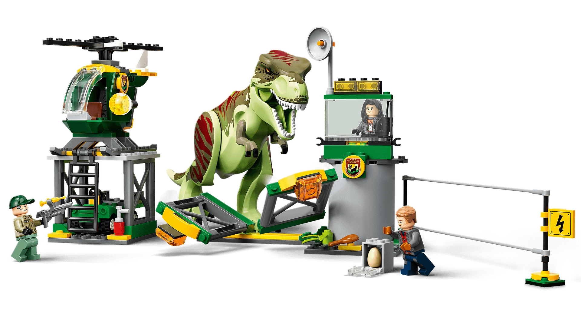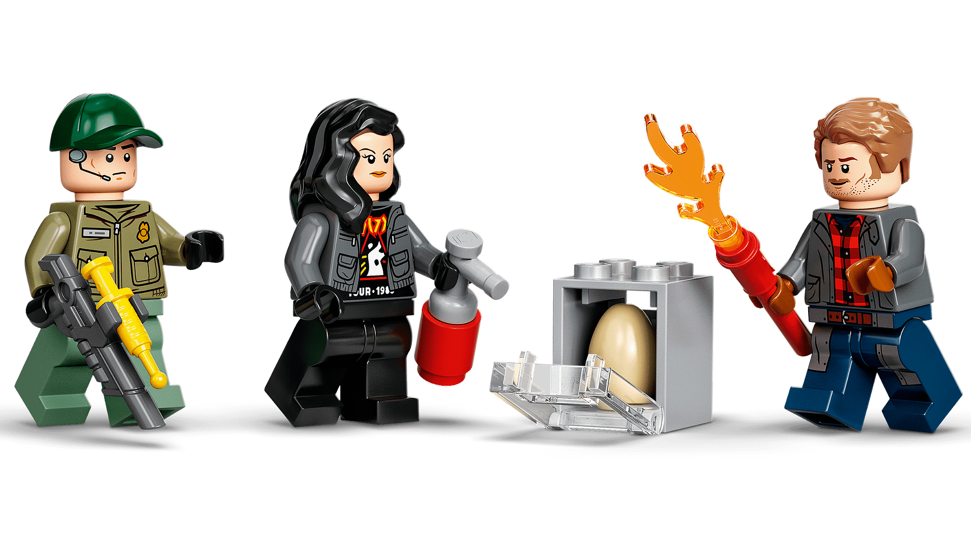 - 3 LEGO® minifigures – Owen Grady, Zia Rodriguez and a wildlife guard with accessory elements including a toy walkie-talkie and tranquilliser for imaginative roleplay