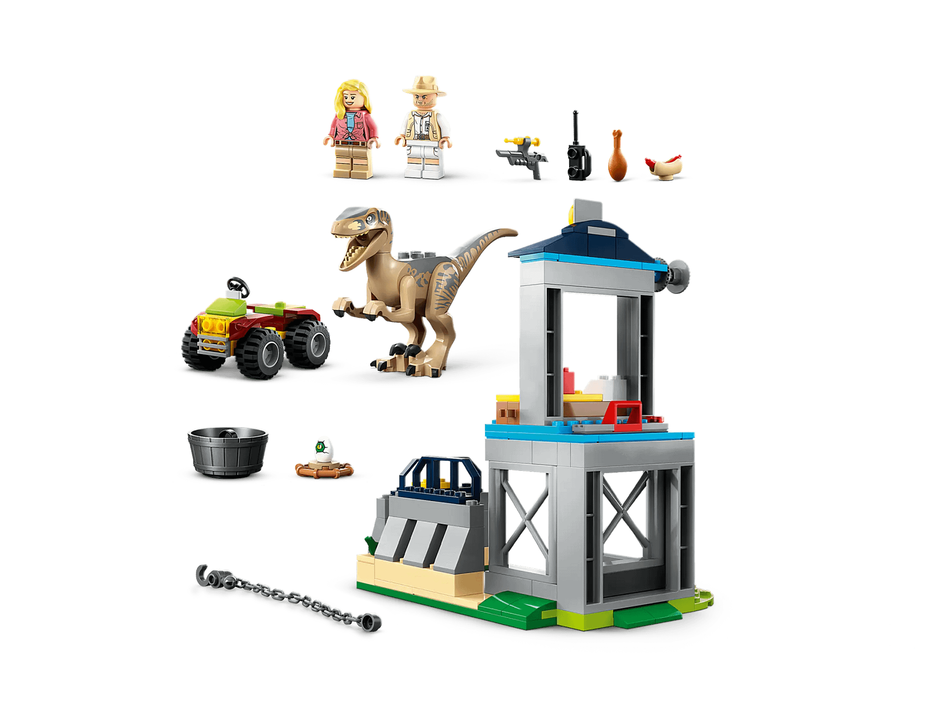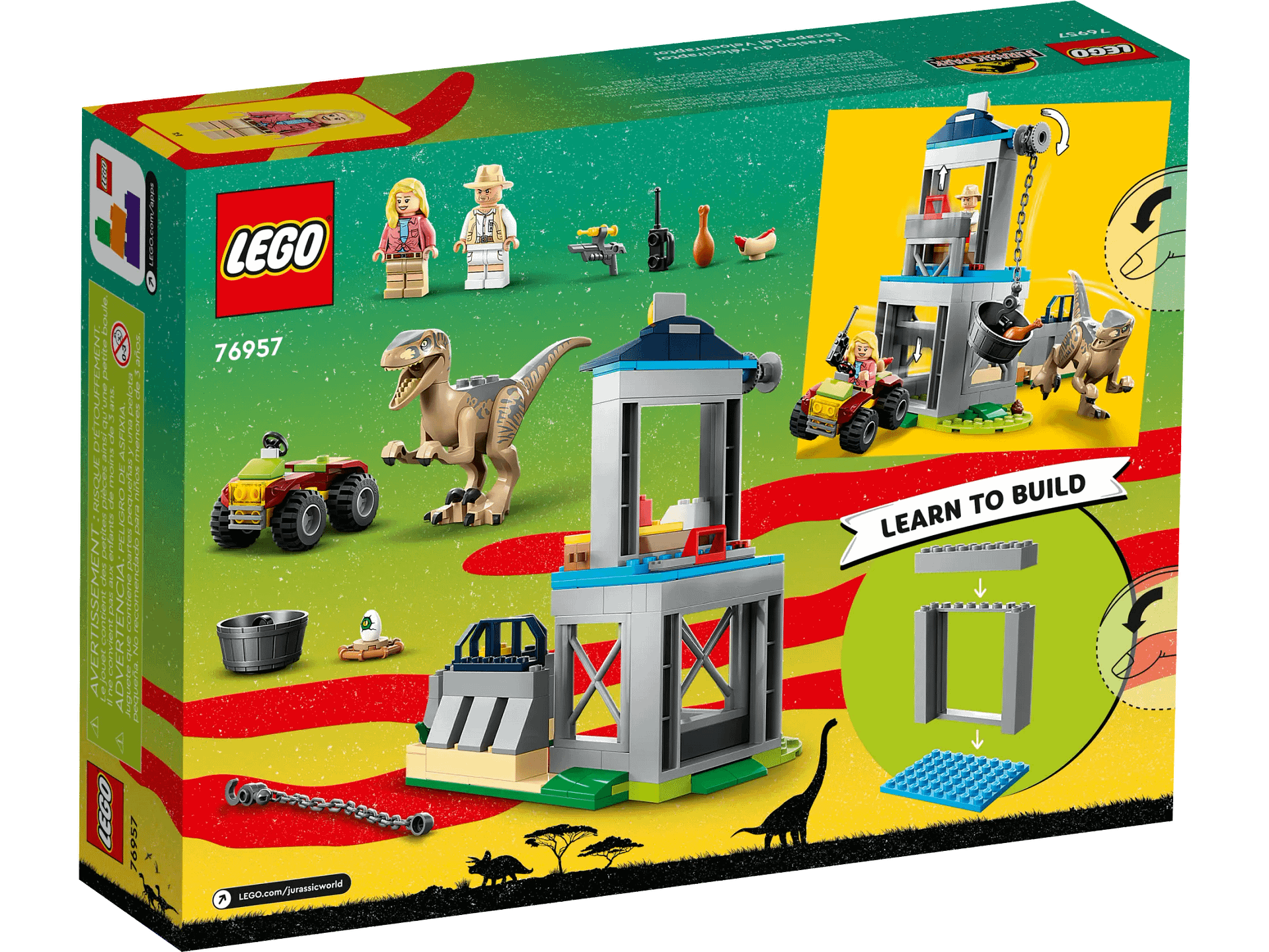 - Starter set – Introduce kids aged 4 and up to LEGO® Jurassic World toy playsets with Velociraptor Escape (76957), featuring a posable Velociraptor figure, quick-build dinosaur pen and an off-roader