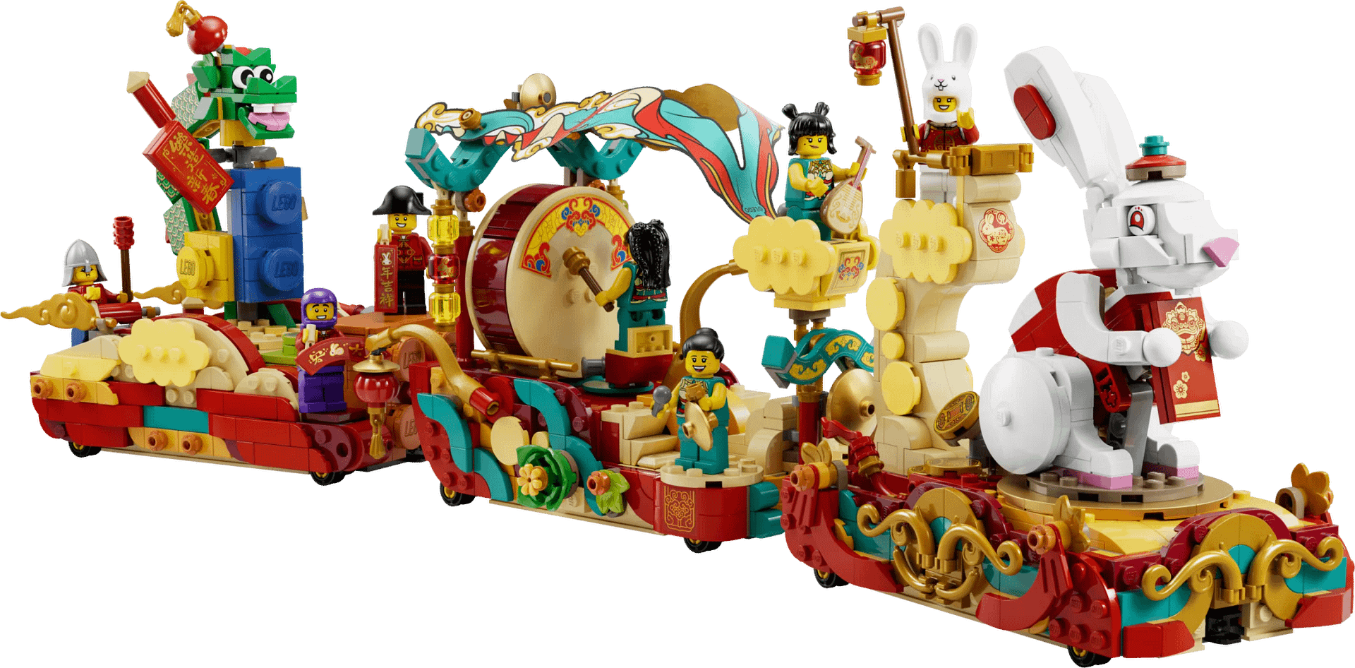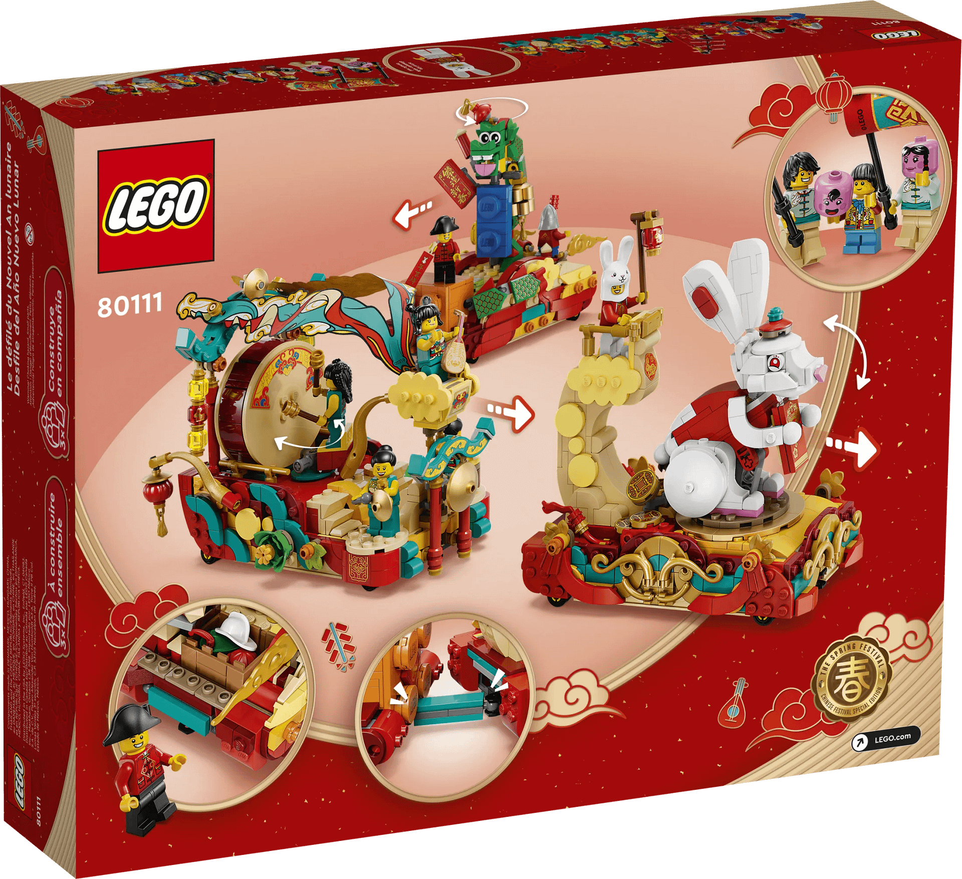 - Lunar New Year play-and-display set (80111) – LEGO® builders can recreate the joyous atmosphere of a traditional Lunar New Year Parade with this set featuring 3 colourful, connectible toy floats