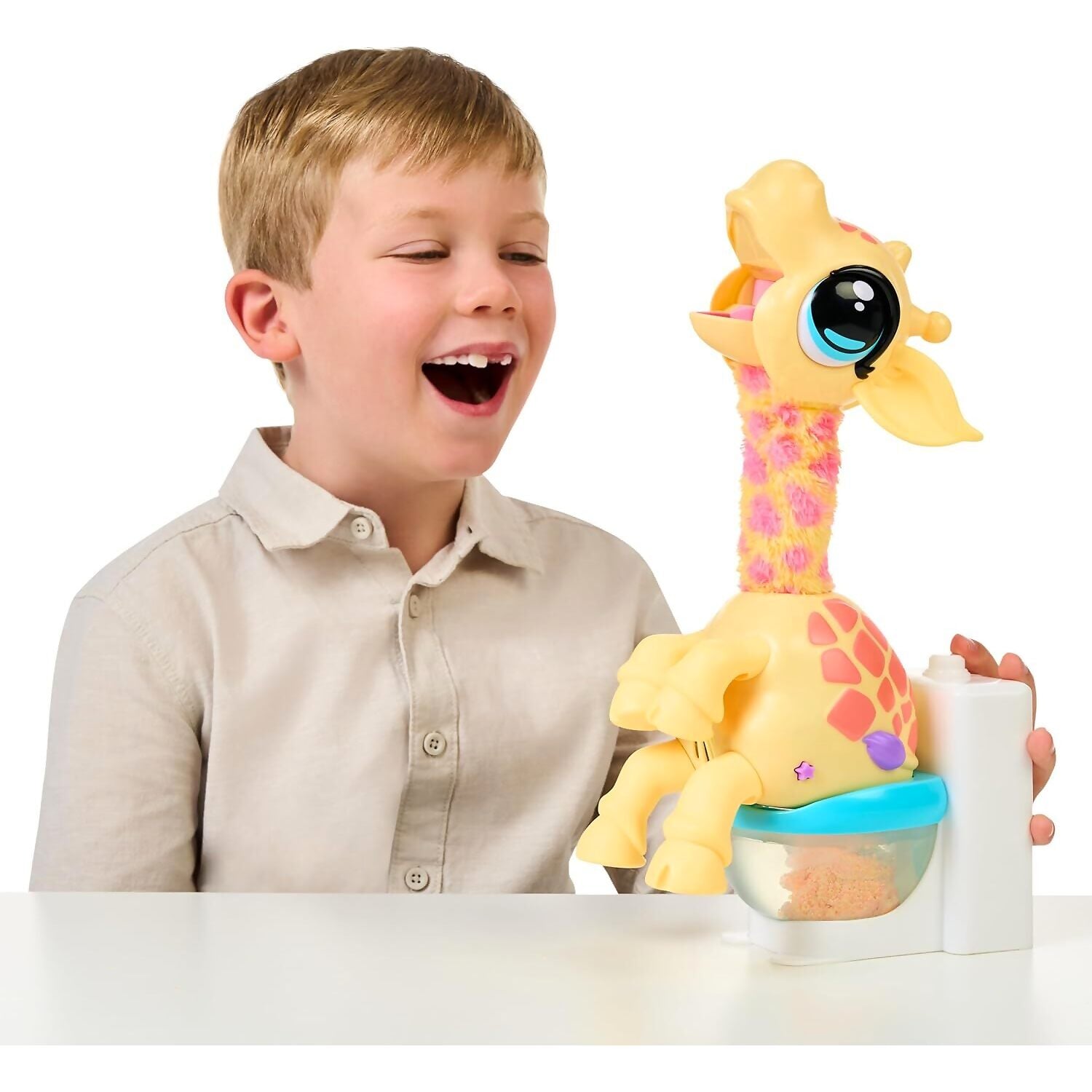 Gigi repeats what you say, dances with delight, and offers mess-free repeat play thanks to her reusable food system. Simply scoop the contents from the toilet bowl and watch it dry back into giraffe food, ready for another round of fun. Designed for endless laughter and imaginative engagement, Gigi is the perfect toilet-trained companion for kids who love quirky, interactive pets.