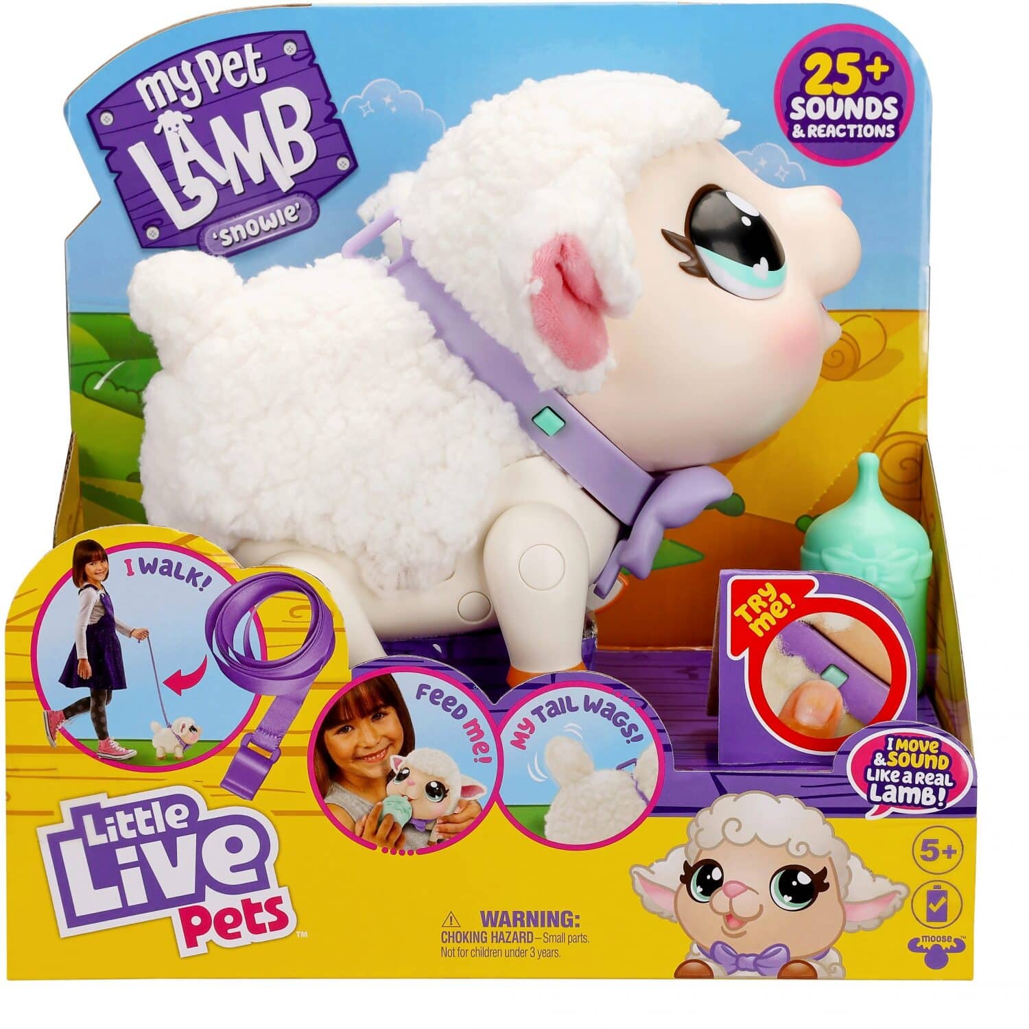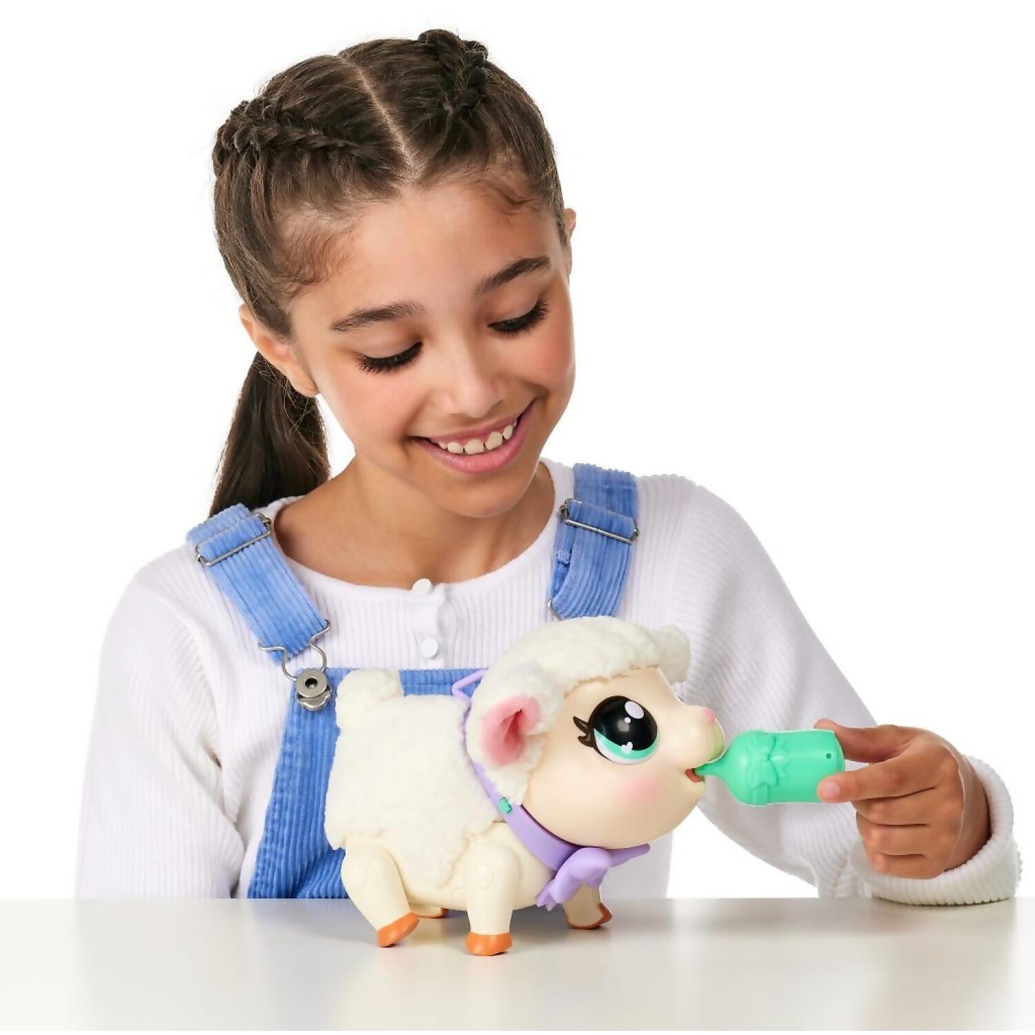 . With over 25+ sounds and reactions, Snowie moves and sounds just like a real baby Lamb. Feed her with her bottle and give her a cuddle as she reacts to your touch. Watch her tail wag as she walks.