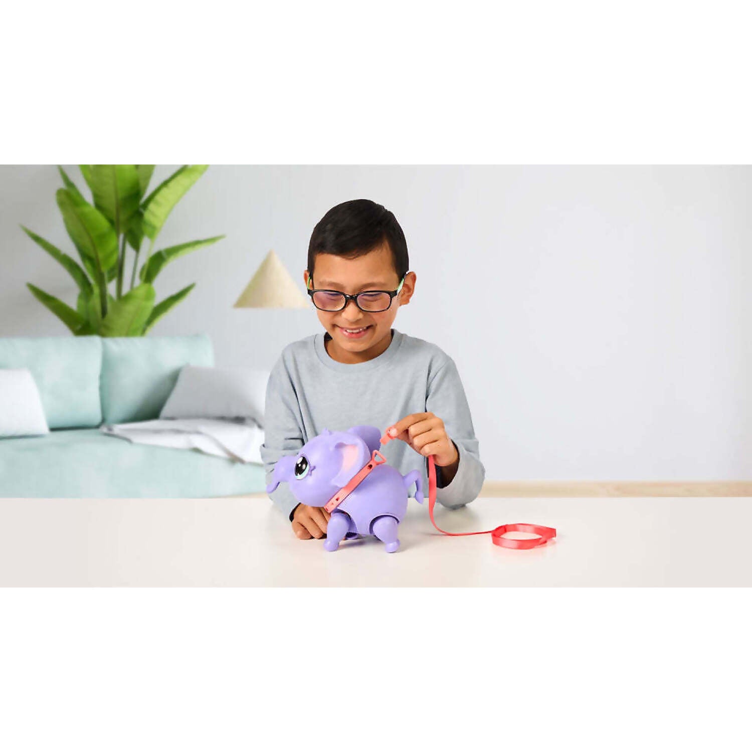 Toots has cute wiggly ears and a trunk that sways as she walks. Attach her leash to take her for a walk or watch as she moves and dances to her own music tunes.
