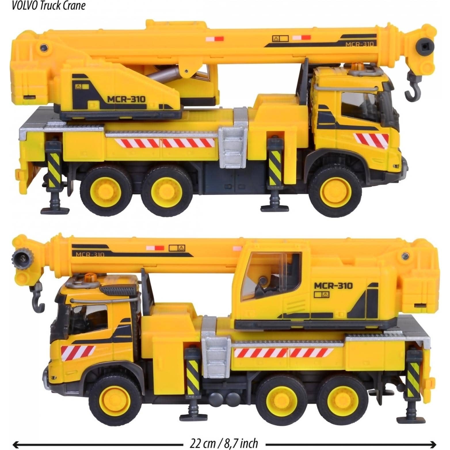 Majorette – Toy truck crane (22 cm) – Large Volvo construction vehicle with extendable crane, cable winch and rubber wheels, light and sound effects (includes batteries), for children aged 3 and above