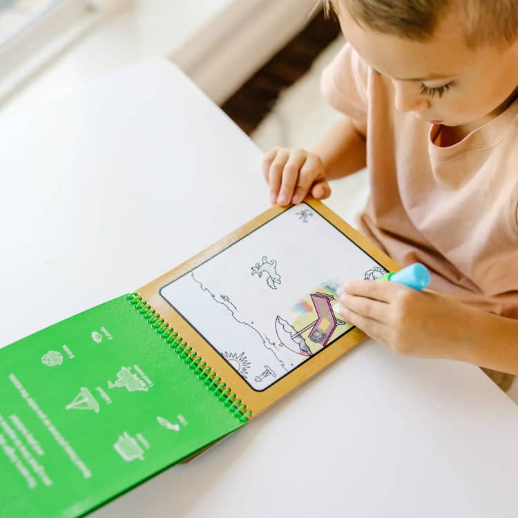 - 4 spiral-bound seasons-themed coloring boards (winter, spring, summer, fall) and a refillable water pen