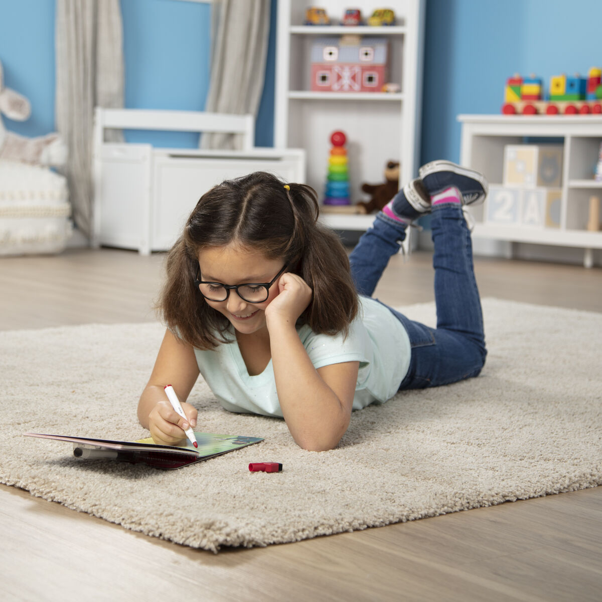 Activity book of reusable word, picture, and solve-the-mystery spy games for one or two players to do with dry-erase markers Sturdy spiral-bound book with 10 double-sided pages and 16 different games Includes 2 different-colored dry-erase markers with built-in eraser caps Convenient built-in dry-erase marker storage, handy size, and reusability make it perfect for travel Ages 6+; 15cm x 25cm x 1 Melissa & Doug