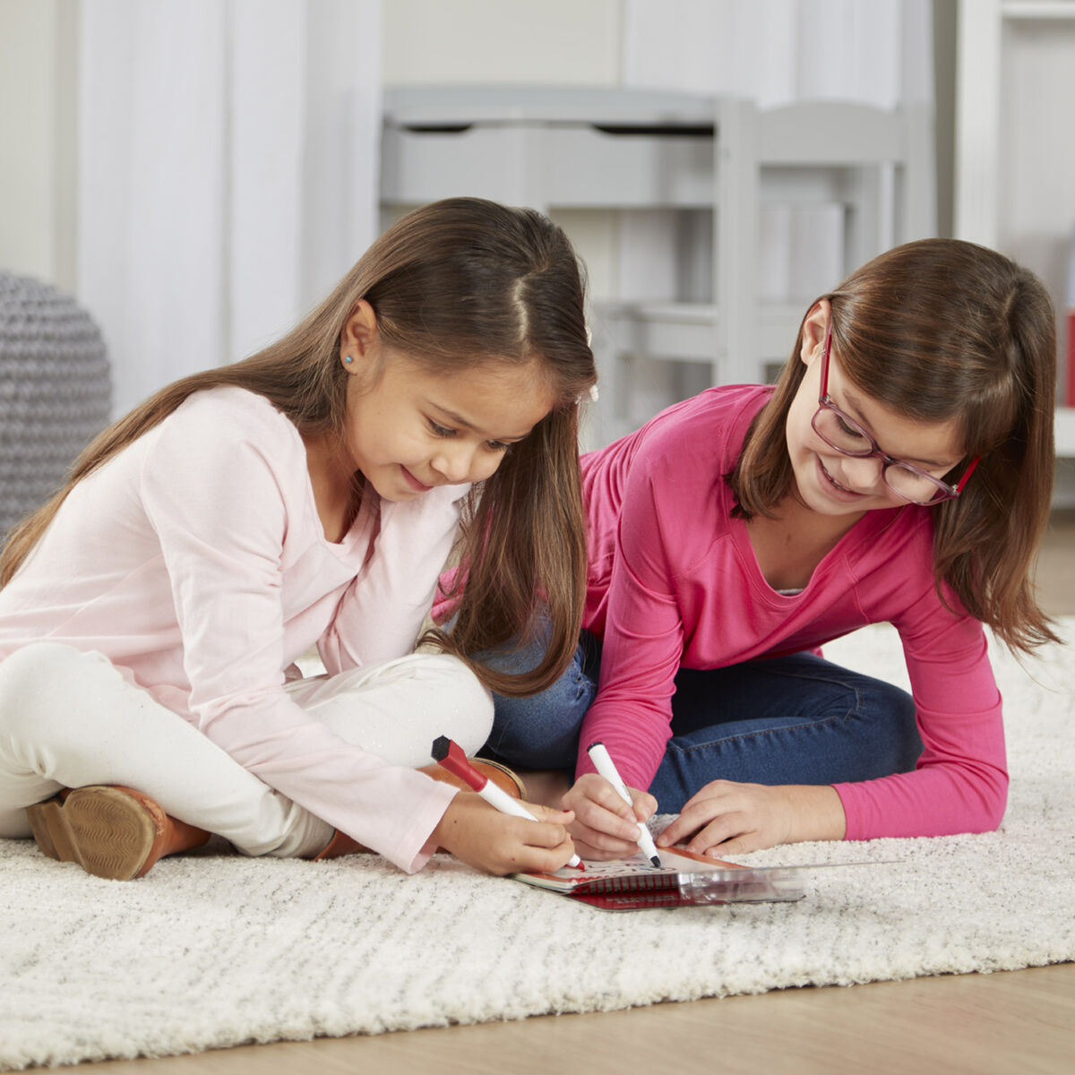 Take fun on the go with this re-markable take-anywhere book of dry-erase marker spy games! Choose from 16 different wordplay, creative, and picture spy and detective games for one or two players, including classics like mazes and I-spy, as well as games that are sure to become new favorite challenges, like code-breaking and Crazy Car Chase. Two included dry-erase markers with built-in eraser caps store conveniently in the cover of the spiral-bound book, making it a perfect travel activity for kids six and older. Its easy to write on, erase, then play again!