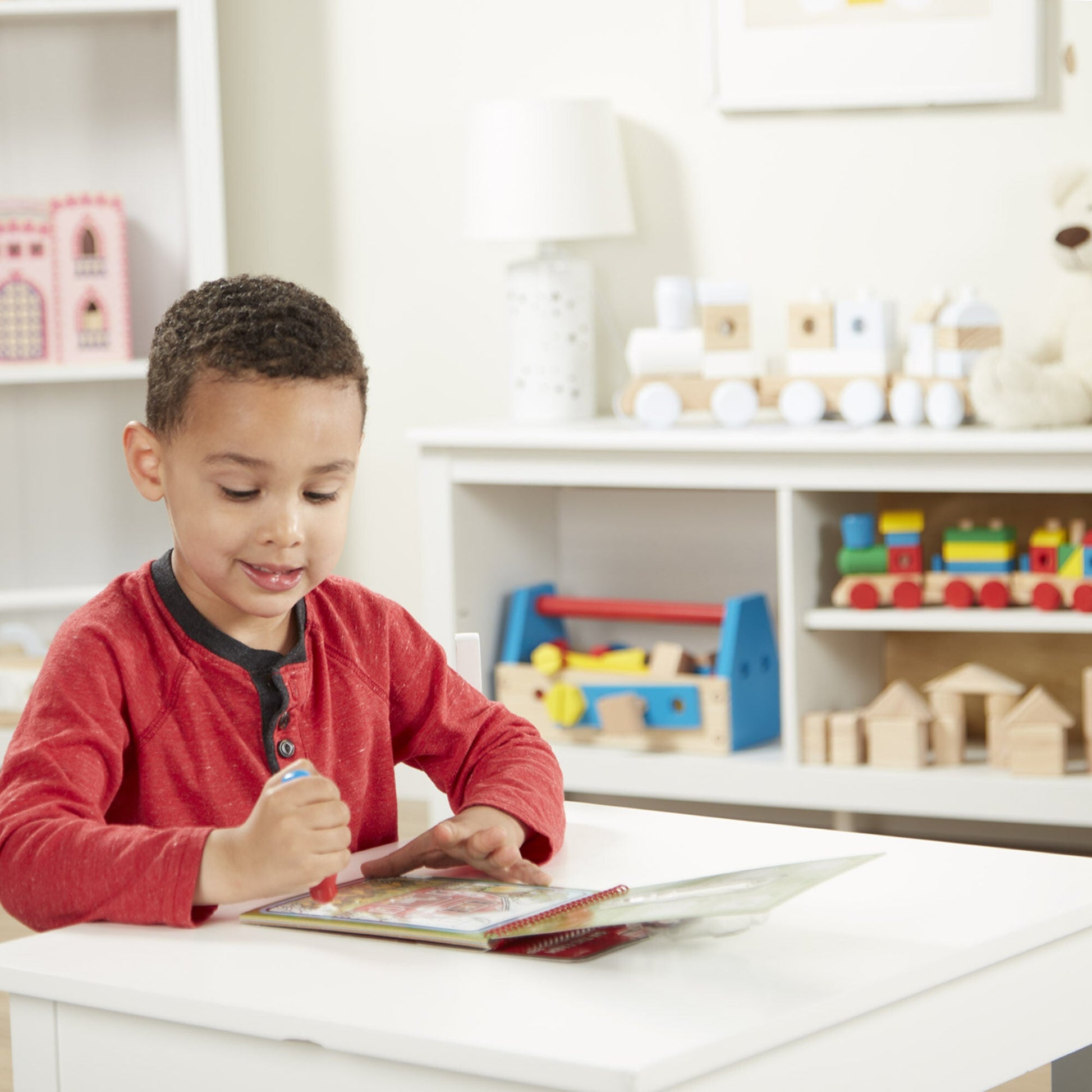 No-mess painting for kids! This exciting paint-with-water colouring book includes four reusable pages and a refillable water pen. Simply use the pen to colour in each scene - details and vibrant colour appear with every stroke! Then let the page dry to erase the pictures and colour it in again and again. This farm-themed book includes four scenes to colour,and a search-and-find activity for each scene. The chunky-sized water pen is easy for kids to hold and stores neatly right in the front cover,making this Water WOW! an ideal travel activity book and travel toy for kids!