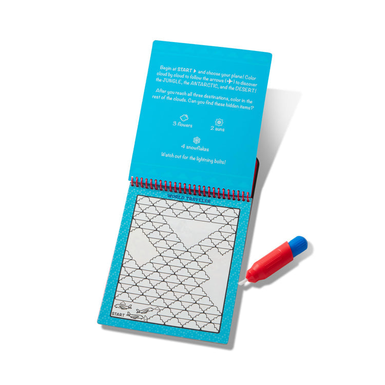 - Seek-and-find and counting activities for each scene; chunky-size water pen is easy to fill, easy to hold, stores in compact, spiral-bound book--great for travel