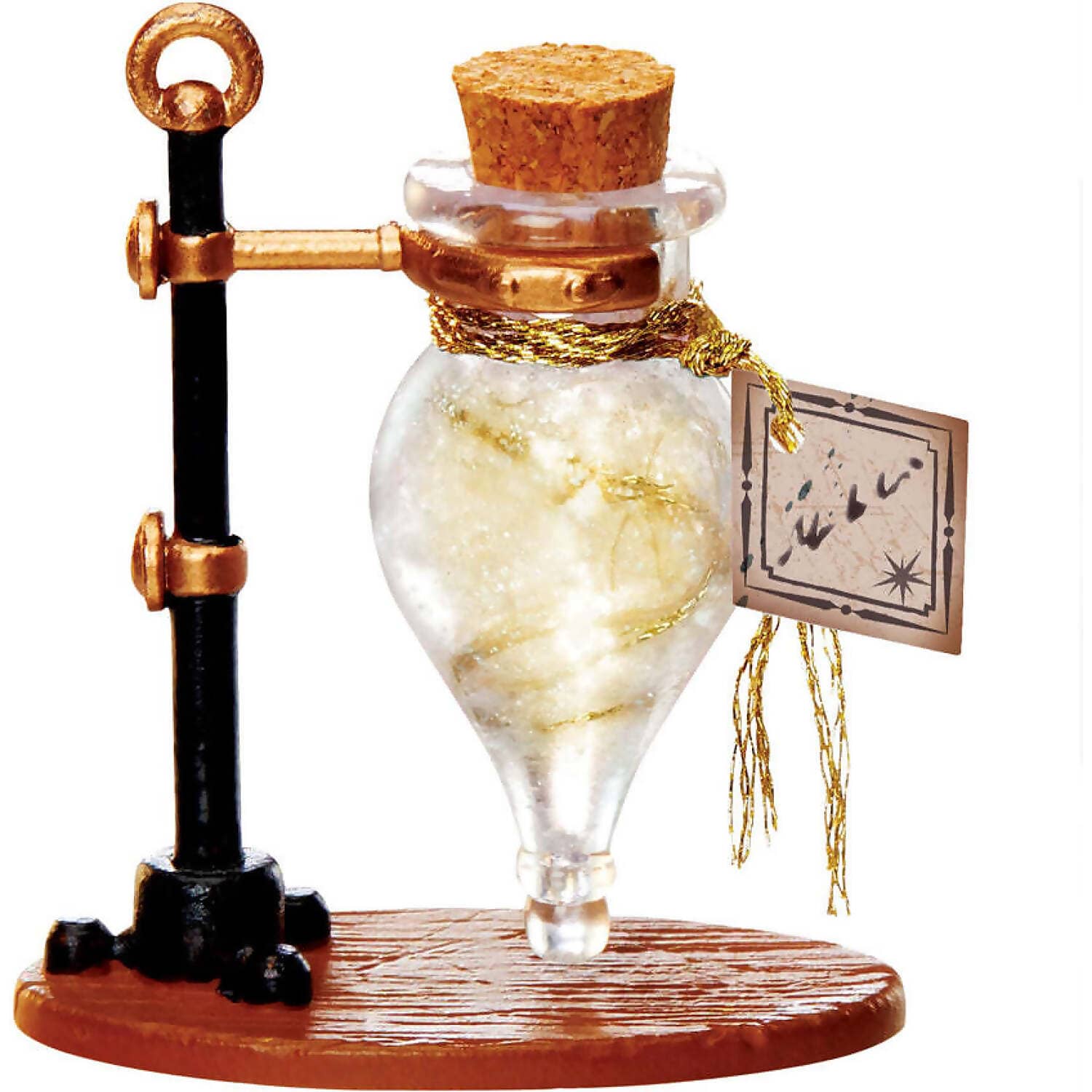 Once unboxed, users can compare the contents with the included collector’s guide to identify their mini potion replica. Following the instruction card, they can craft their potion and set it under UV light, such as sunlight, until the resin hardens. The ball transforms into a replica potion bottle that fits the mini table included, providing a perfect display for showcasing these magical creations.