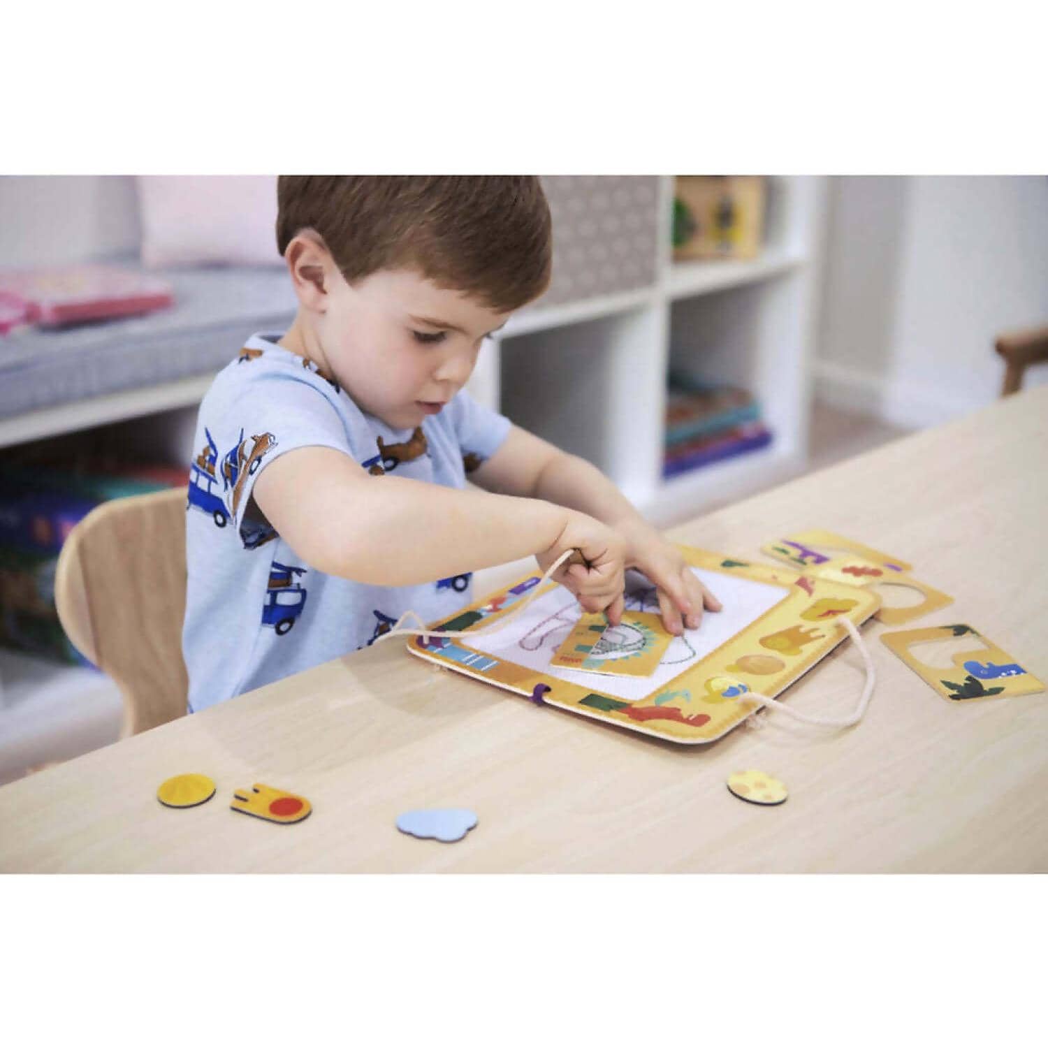 Product Description: The Mieredu - Magic Go Drawing Board - Doodle Dino is a beautiful eco-friendly magnetic drawing board that offers hours of creative play. Children can doodle, write, or draw with the attached stylus pen and use four themed magnetic stamps to create their masterpieces. This interactive toy is perfect for letting their imaginations run wild.