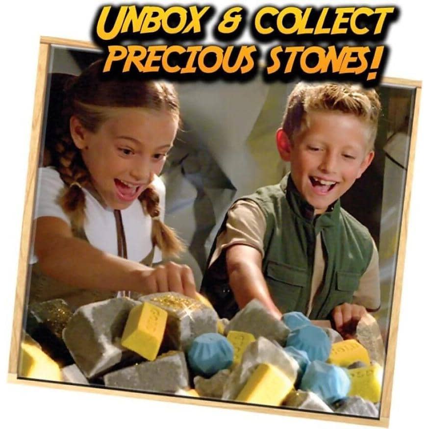 Become a real treasure hunter with Mine it Diamond. Chip away with your hammer and chisel to reveal precious stones every time, with 6 precious stones to collect; Black Line Jasper, Rose Crystal, Picture Jasper, Red Onyx, Tiger Eye and Volcanic Rock. But will you be lucky enough to find real a diamond? Each pack includes 1x Mine it Diamond sandstone bar, 1 x Chisel, 1 x Magnifying glass and 1 x Hammer.