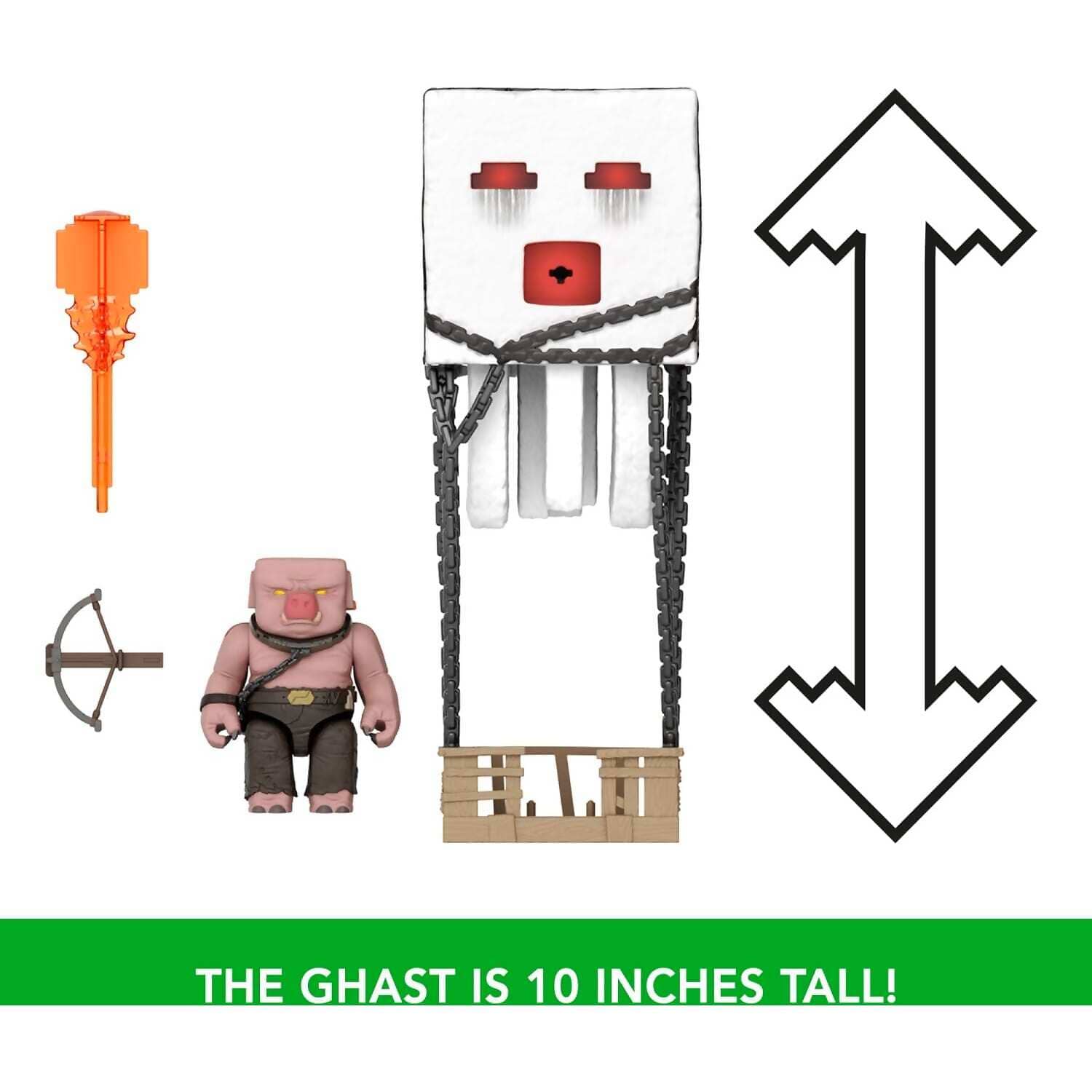 Includes 1 ghast action figure, 1 piglin warrior figure and 1 projectile.