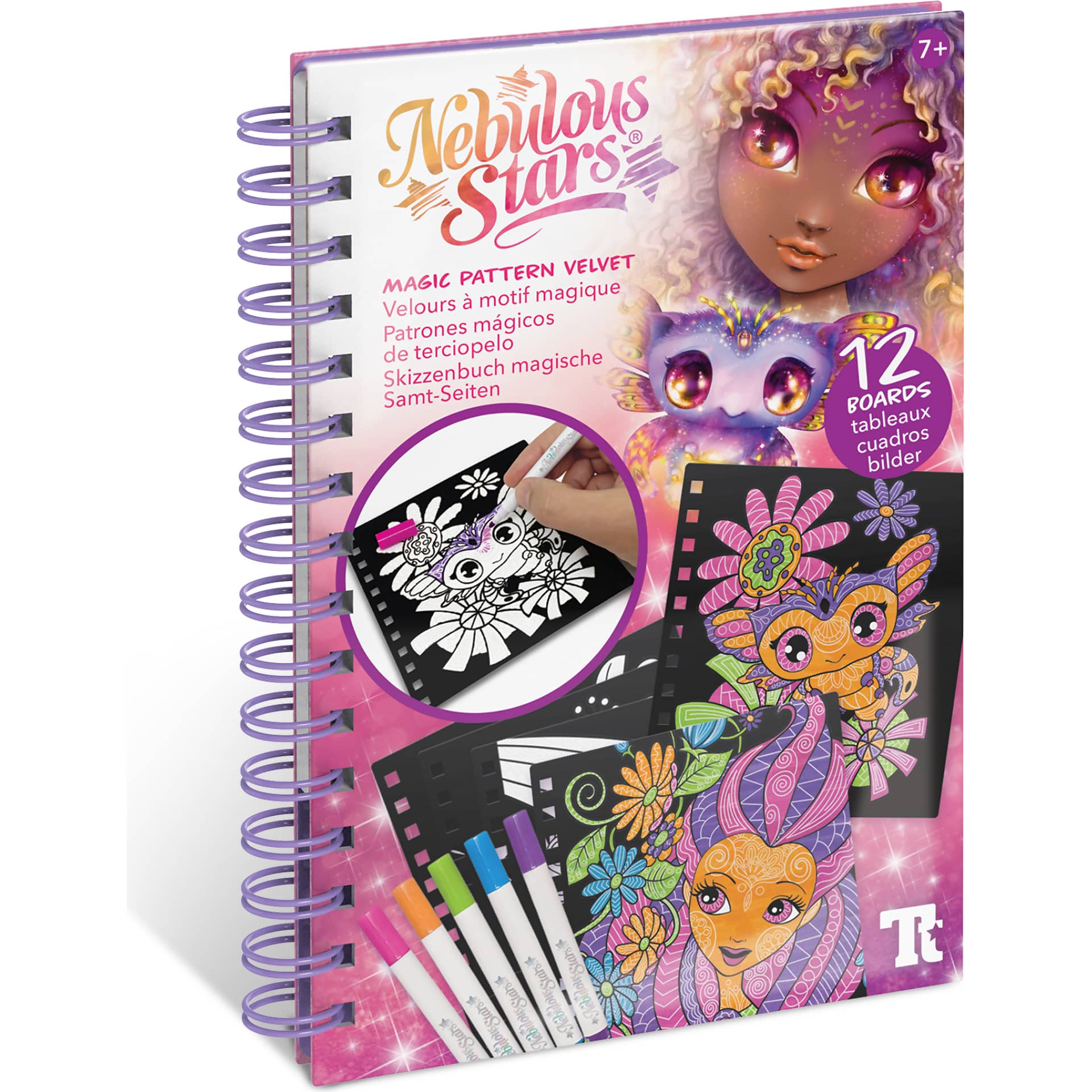 The Nebulous Stars - Magic Pattern Velvet Book is a creative and fun toy that allows children to reveal beautiful patterns by simply coloring the drawings with one of the 5 mini markers included. The kit includes 12 magic velvet boards, 5 mini markers, color instructions, and Orelia’s complete story. The velvet boards provide a unique and soft surface for children to draw on, making the experience even more enjoyable.