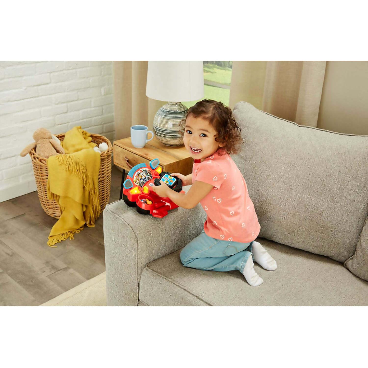 Get ready for a red-hot rescue with the VTech PAW Patrol Rescue Driver ATV & Fire Truck. Hop in and grab the handgrips to transform Ryder’s ATV into Marshall’s fire truck. Three heart-racing modes put kids in the driver’s seat. Practice driving each vehicle while hearing music and sounds that change based on which mode the toy is in. Move the wheel to turn left and right, blast the siren and honk the horn. The turn signals light up and the dashboard flashes along with the sounds.