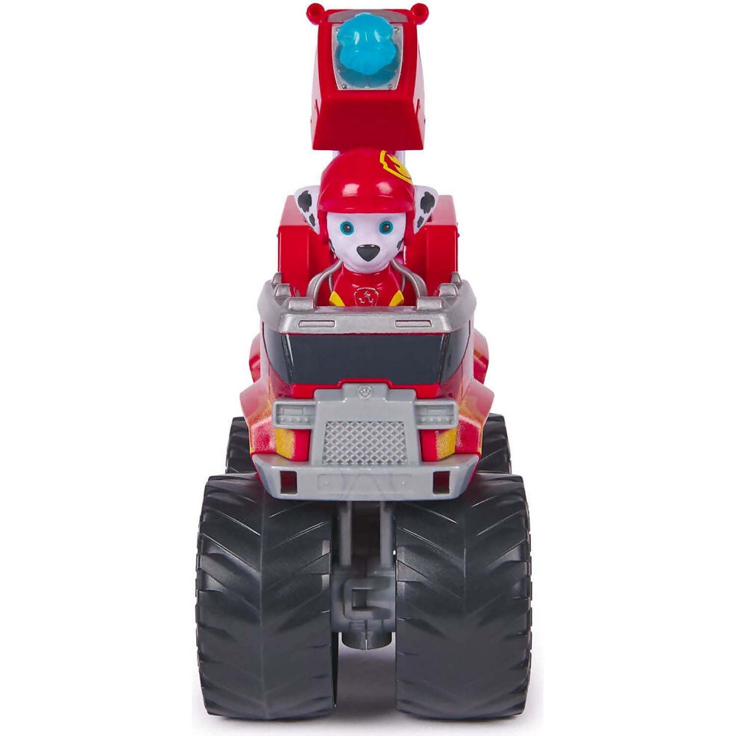 PROJECTILE LAUNCHER: Marshall’s Firetruck themed monster truck features 2 projectiles, with special storage ports! Load the projectile into the launcher, then push the button to fire and save the day!