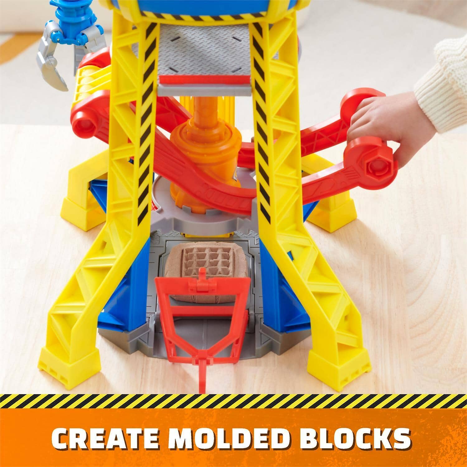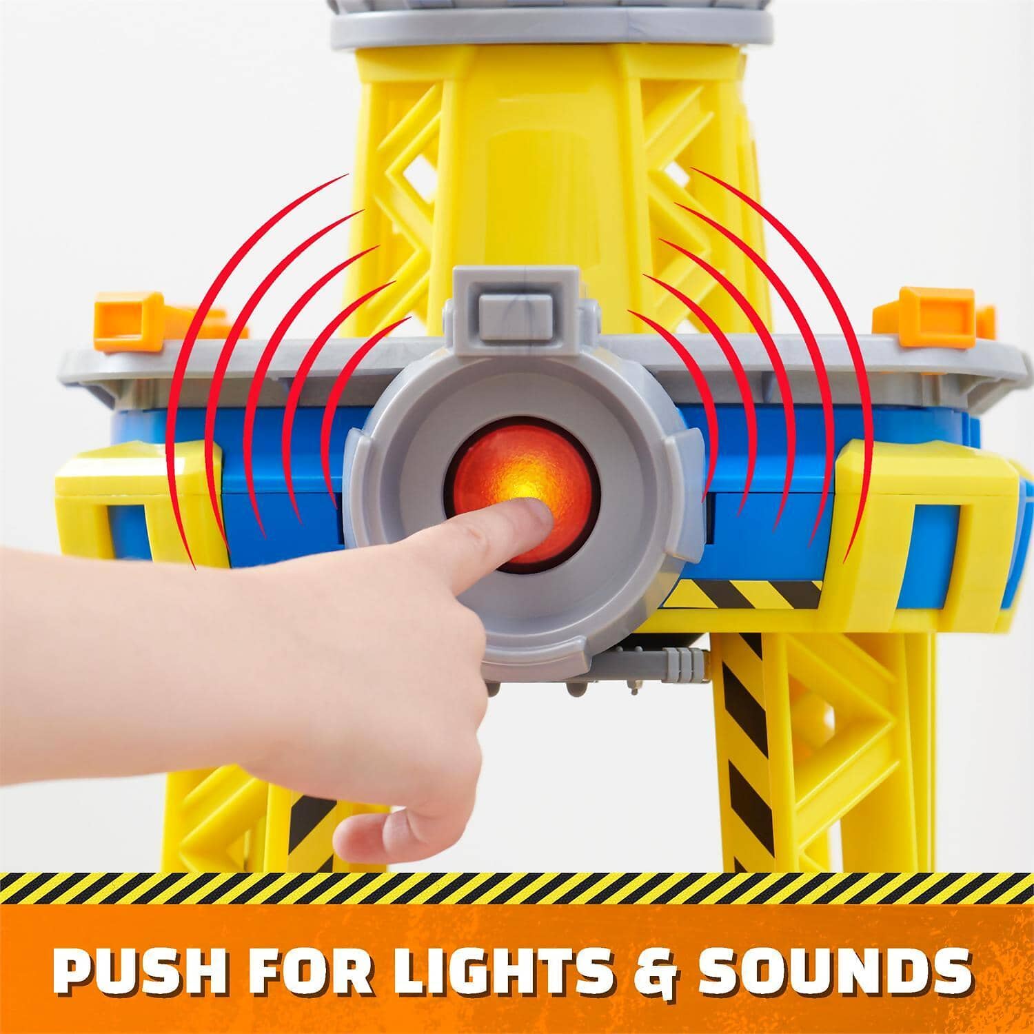 - 2-FOOT PLAYSET WITH LIGHTS & SOUNDS : The Crane Tower features lights & sounds and building toys for kids, like a working crane toy with claw attachment, a compound molding area, an elevator & more.