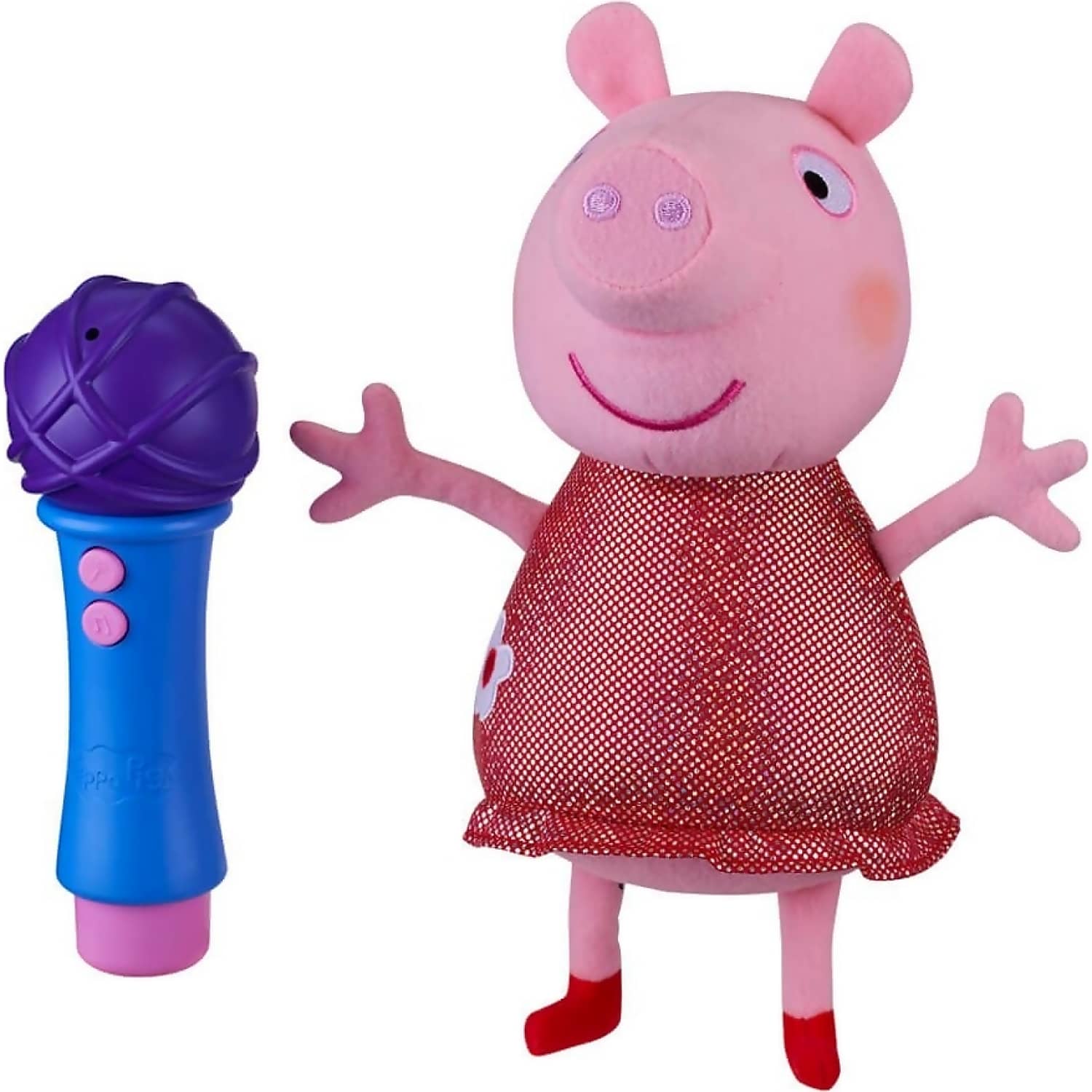 Get into the party mood and practise your singing skills with Sing With Me Peppa. This fun feature plush is a cute and cuddly Peppa Pig soft toy in her sparkly party dress. It includes a special microphone that you can use to sing along with Peppa! With two modes of play, the Peppa Pig Sing With Me Peppa will guarantee hours of fun for your little one!