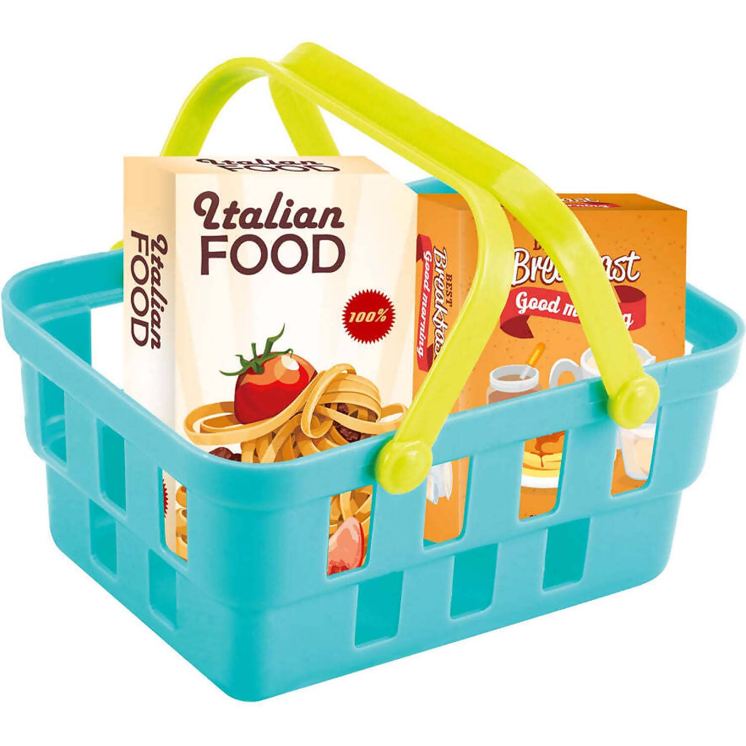 - Includes play money, toy credit card, food boxes, and shopping basket