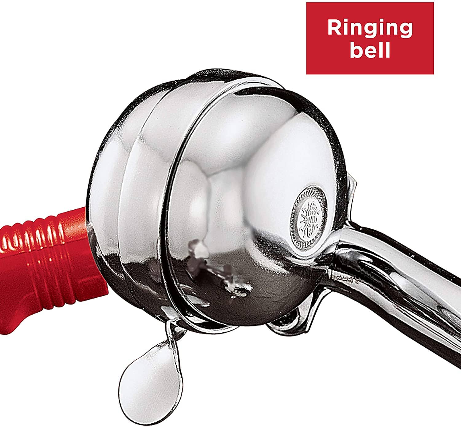The controlled turning radius prevents tipping for safe and confident riding. This pretty RED tricycle is classically styled and includes chrome handlebars and fender. Your child will also love the streamers and ringing bell and the double-deck rear step makes climbing on and off easy. The adjustable seat grows with your child.