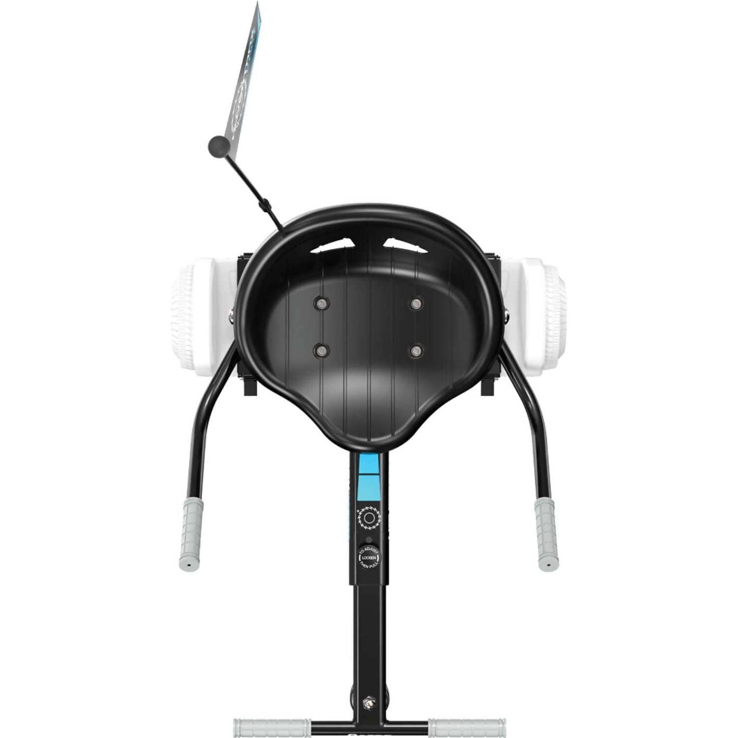 Using the rubber straps, one can quickly strap in the Hovertrax to assemble the go-kart and adjust the length of the frame from 26” to 34” (650mm–860mm). Rubber-gripped hand levers deliver 360-degree spinning action!